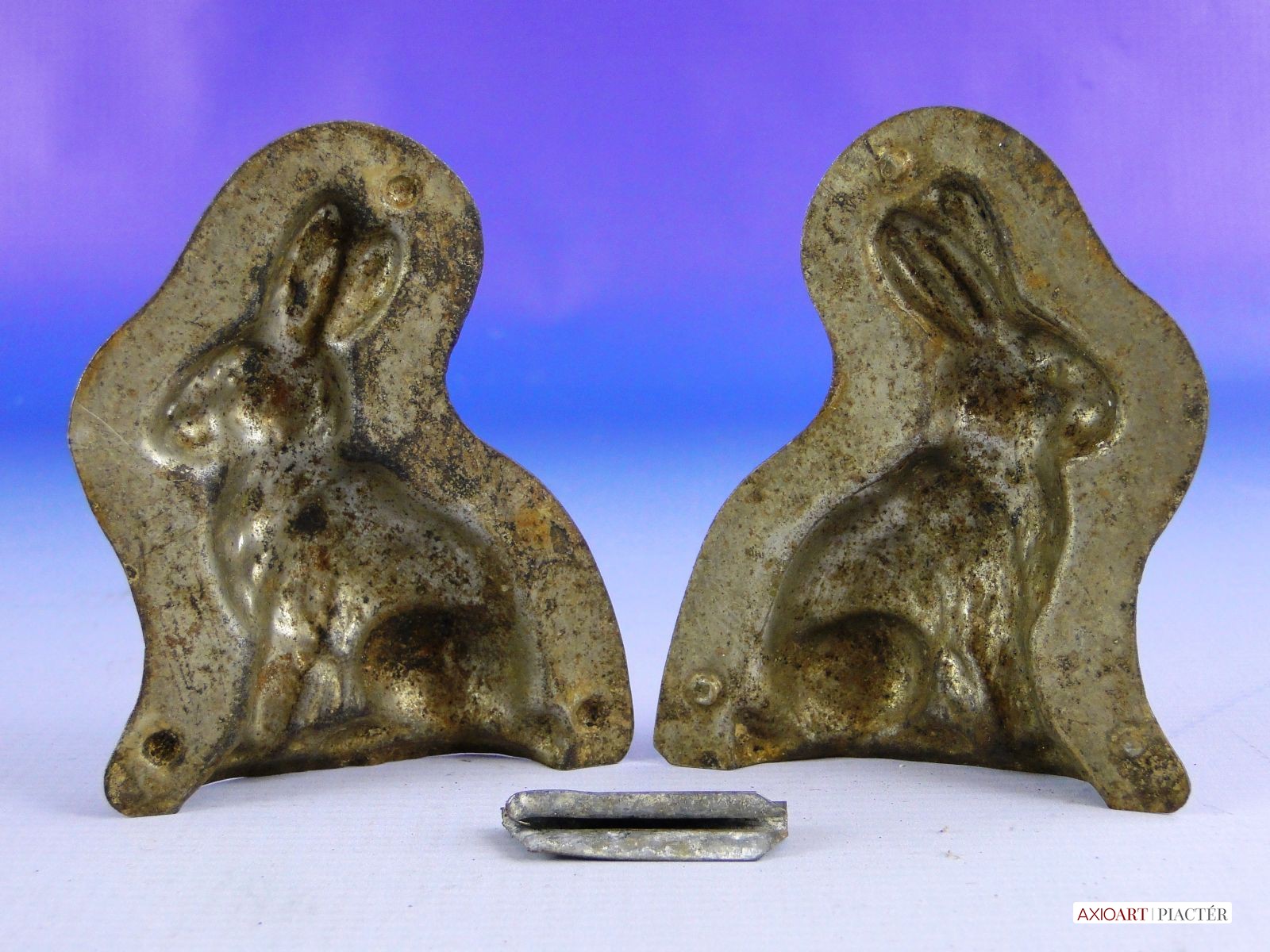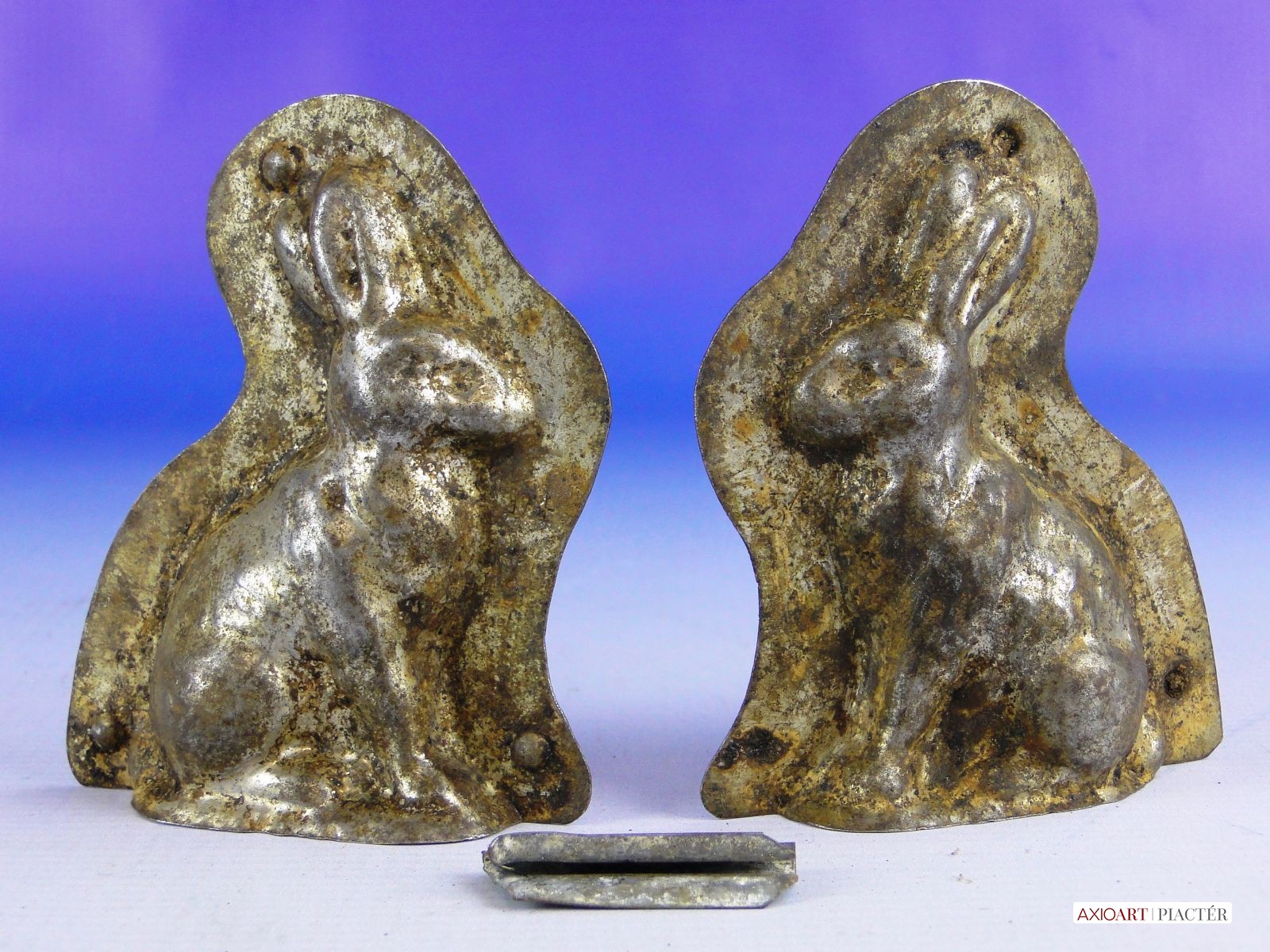 Antik kis méretű nyuszi alakú csoki öntő forma, cukrászati eszköz.