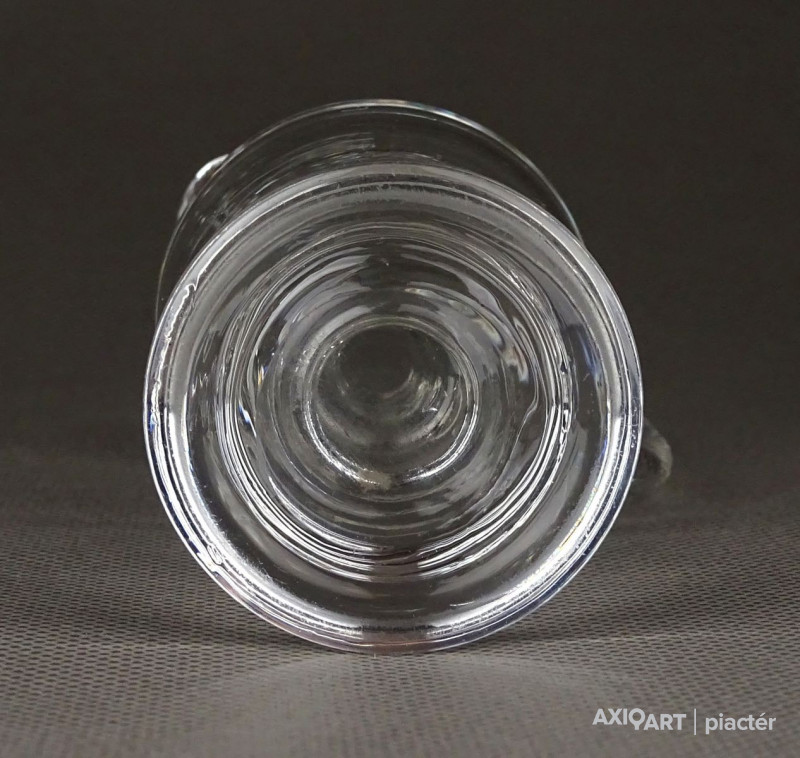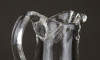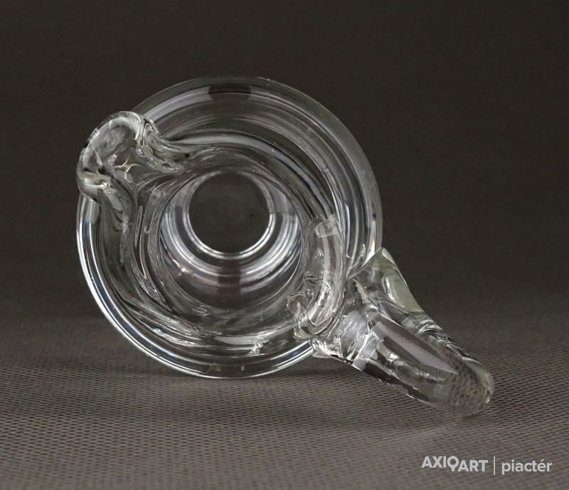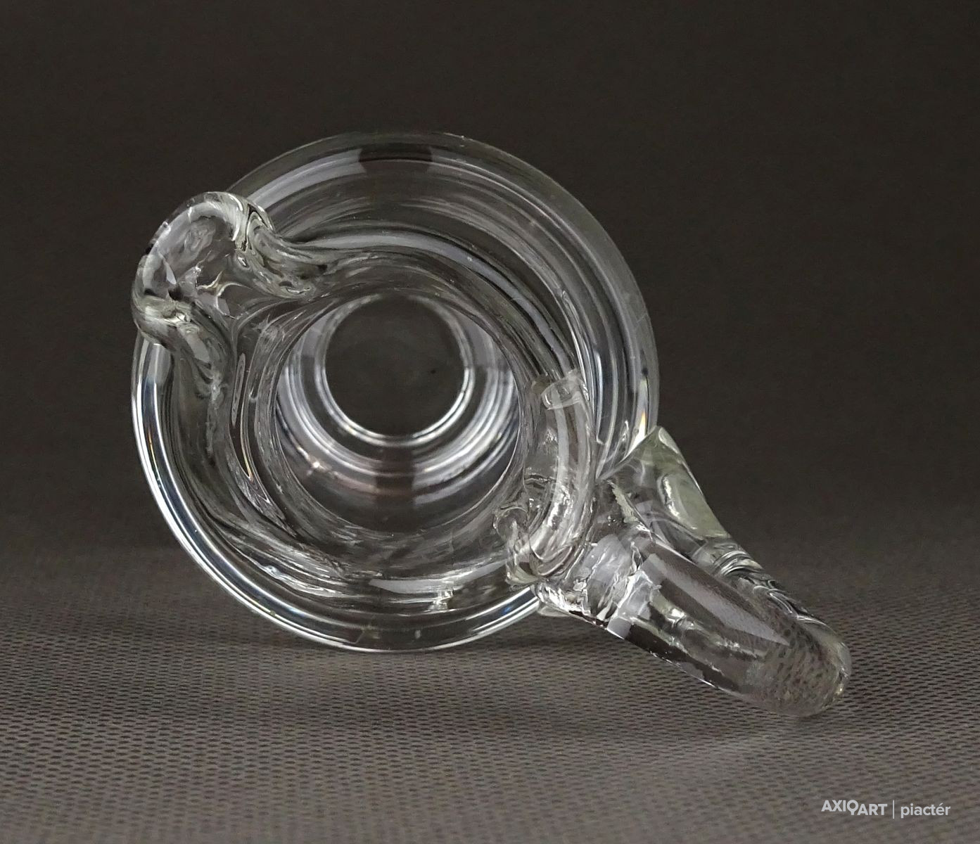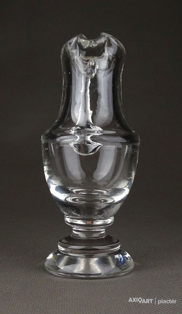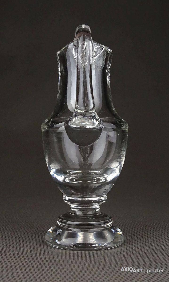 Antik, szép állapotú, kis méretű, vastag falú olajos vagy ecetes asztali kínáló. Fújt üveg kiöntő. A fül felső felénél sérülés található, lásd fotó.