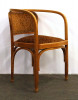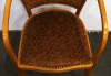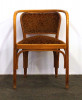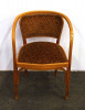 [1D866/KCS] Antik, hajlított támlás, cseresznye színű, szecessziós alacsony támlás, kör karfás szék. Kohn vagy thonet forma, kárpitozott, felújítatlan állapotban. Az ülőfelülete kényelmes, rugós, afrikkal tömött.