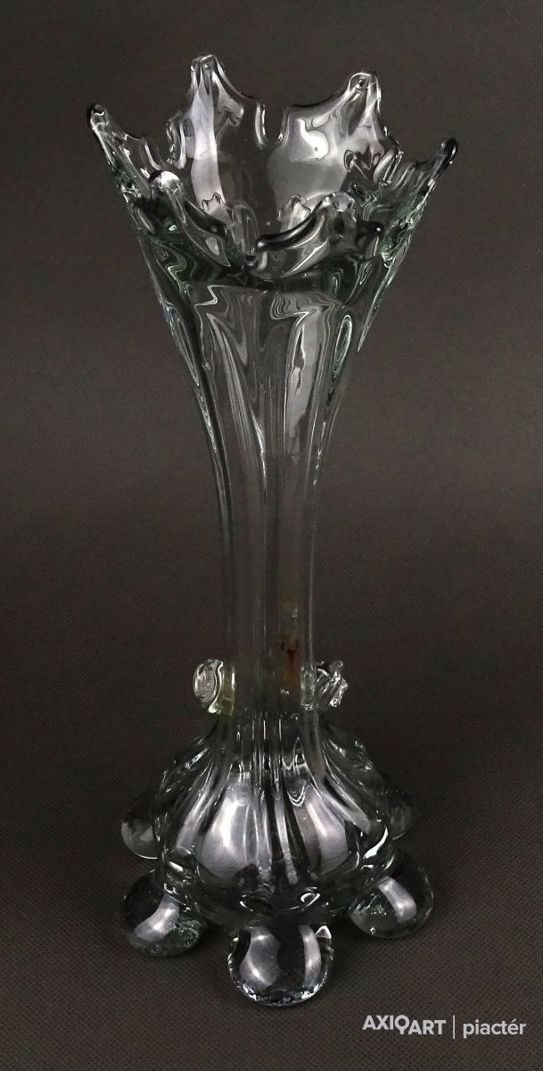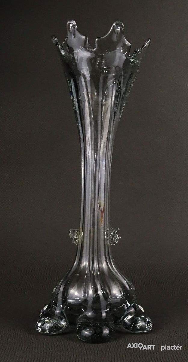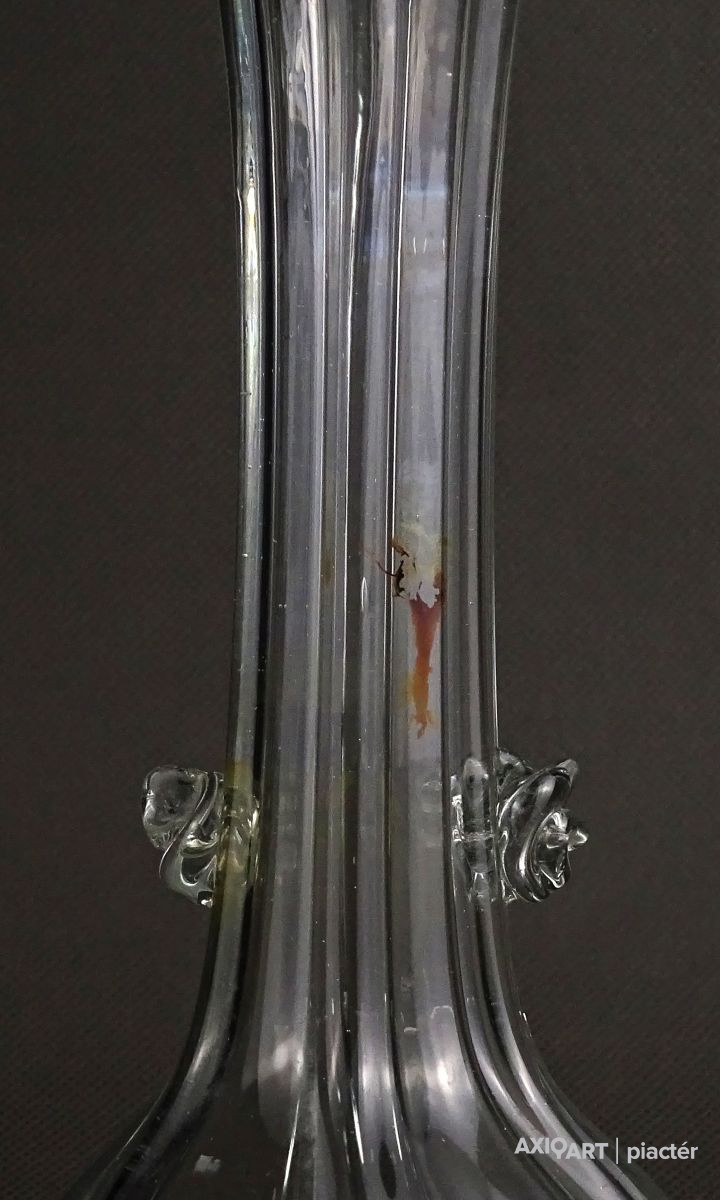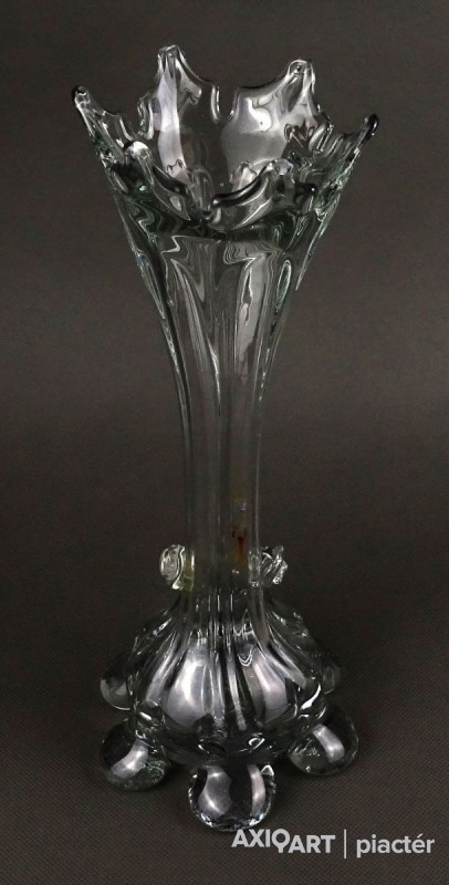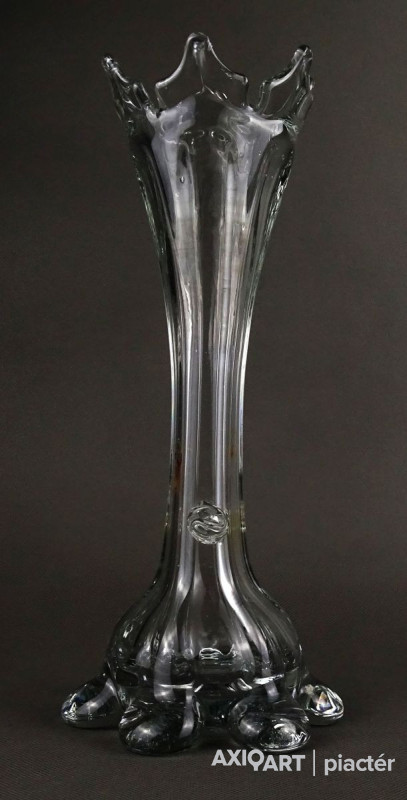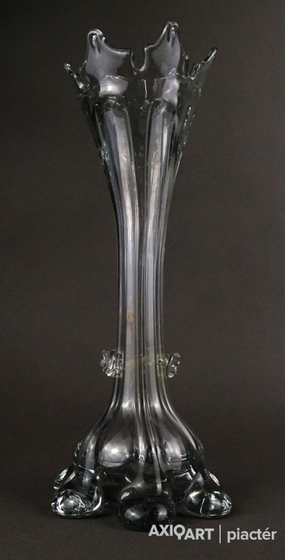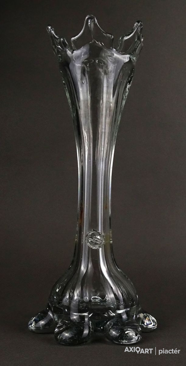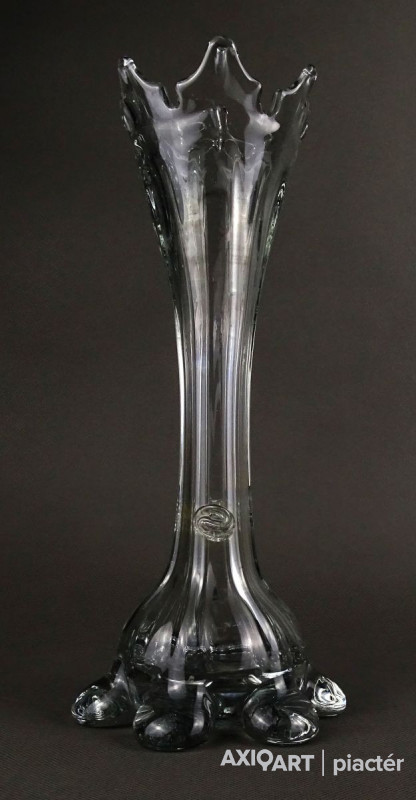 Antik, hibátlan állapotú, áttetsző fújt üveg váza. Muránói üveg. Koronás felső résszel rendelkezik.