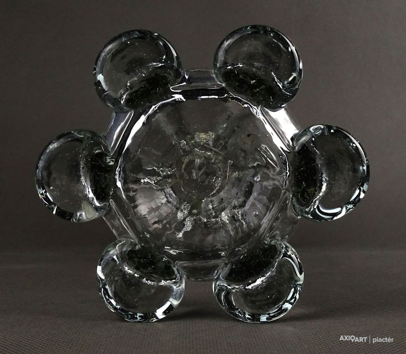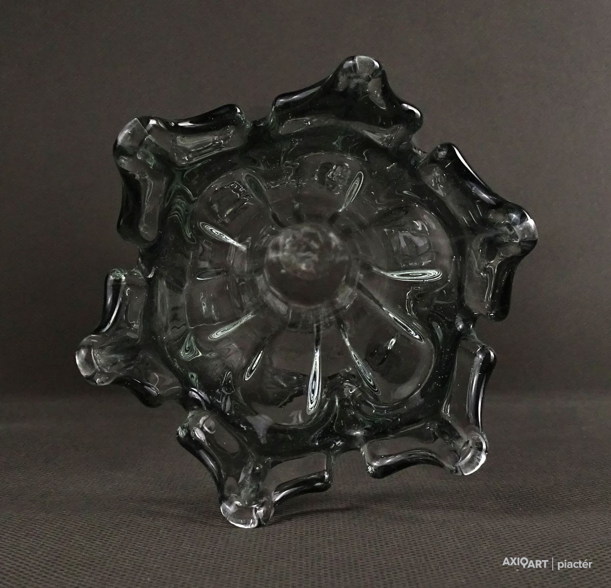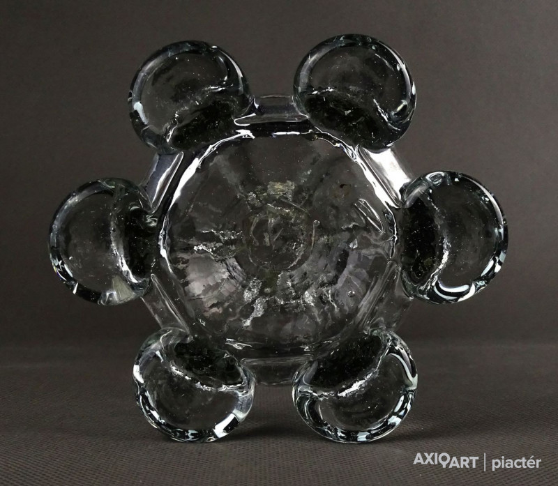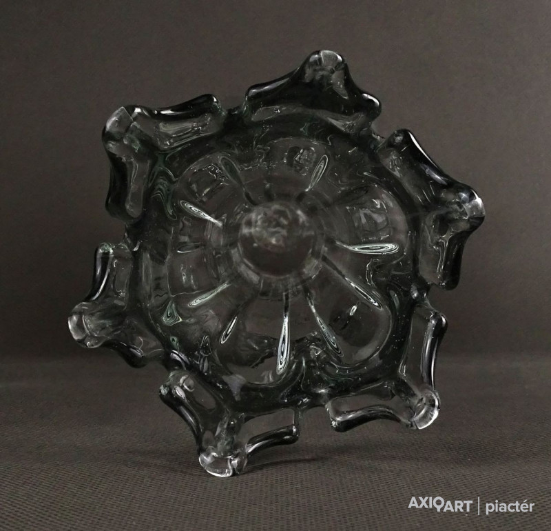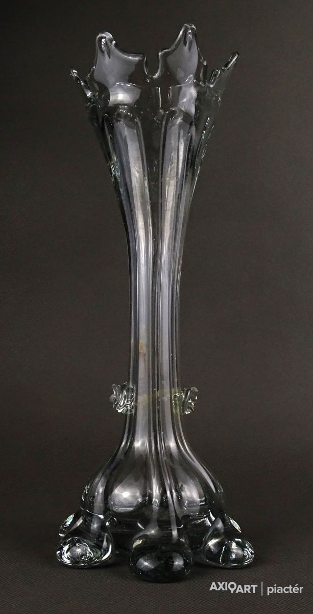Antik, hibátlan állapotú, áttetsző fújt üveg váza. Muránói üveg. Koronás felső résszel rendelkezik.
