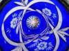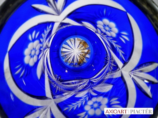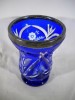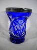 Hibátlan állapotú, 1800-as évekből való kék színezett kristály pohár, peremén ezüst díszítés.