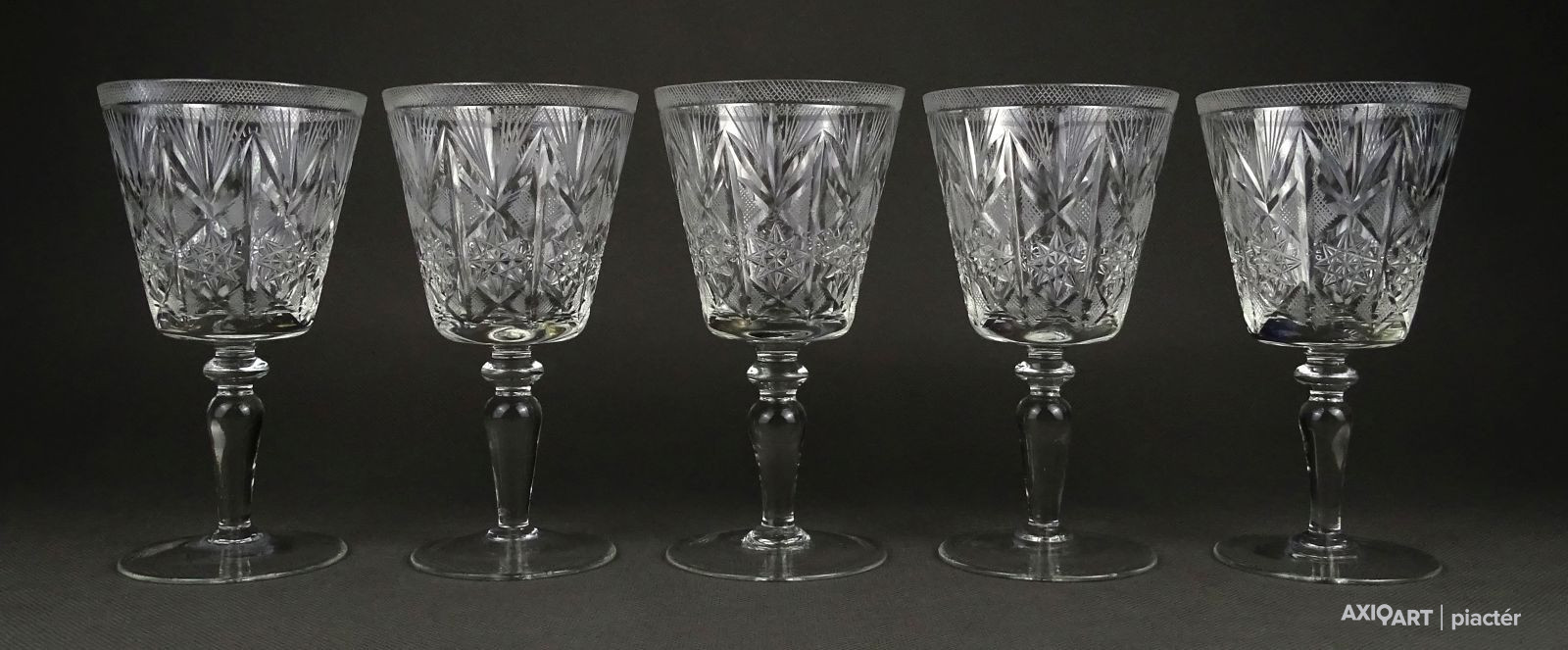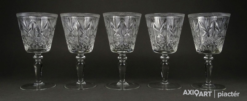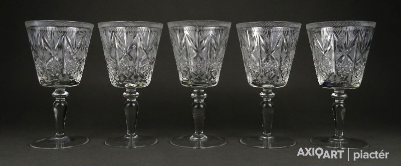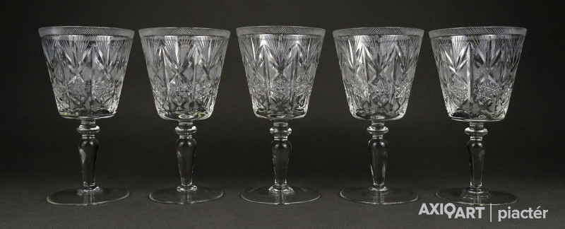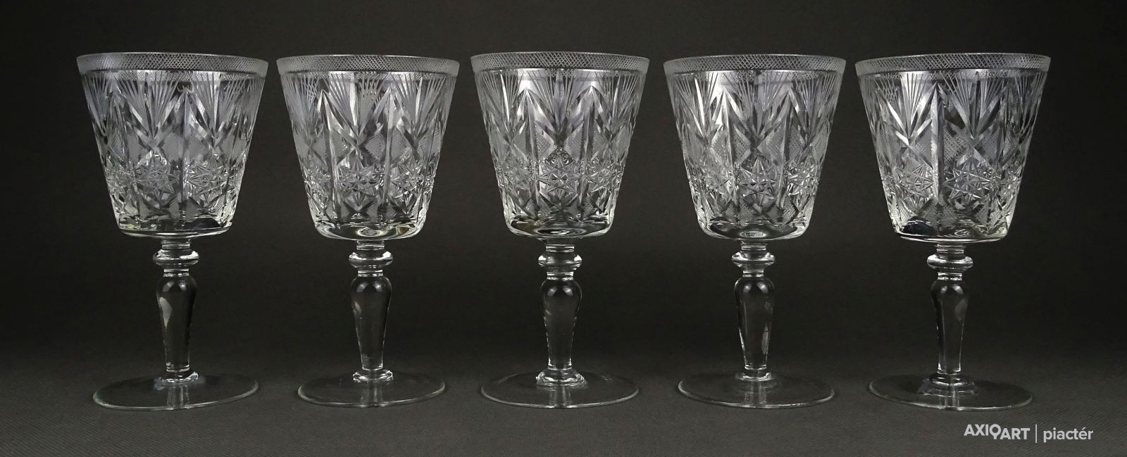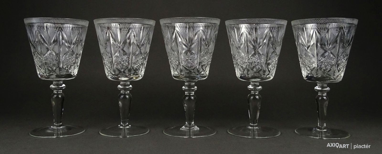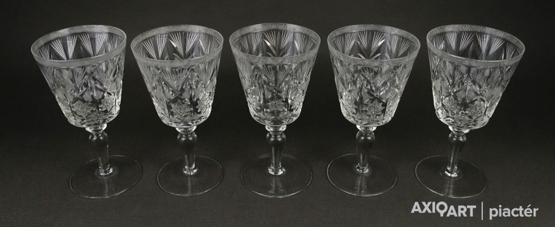 Antik kristály talpas pezsgős pohár 5 darab 14.5 cm
