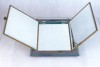 Antik, réz láncos falra akasztási lehetőséggel rendelkező különleges háromrészes tükör, falitükör.