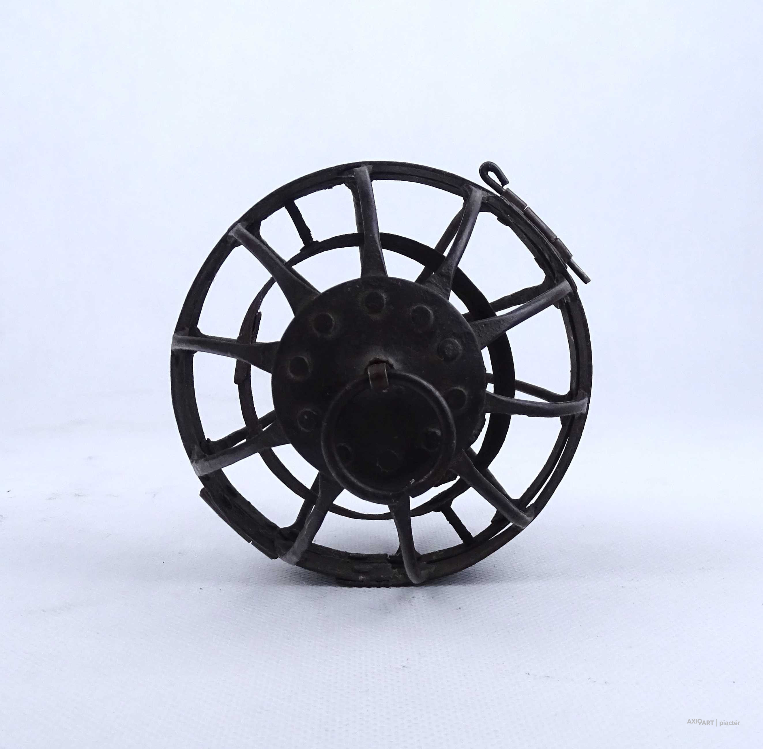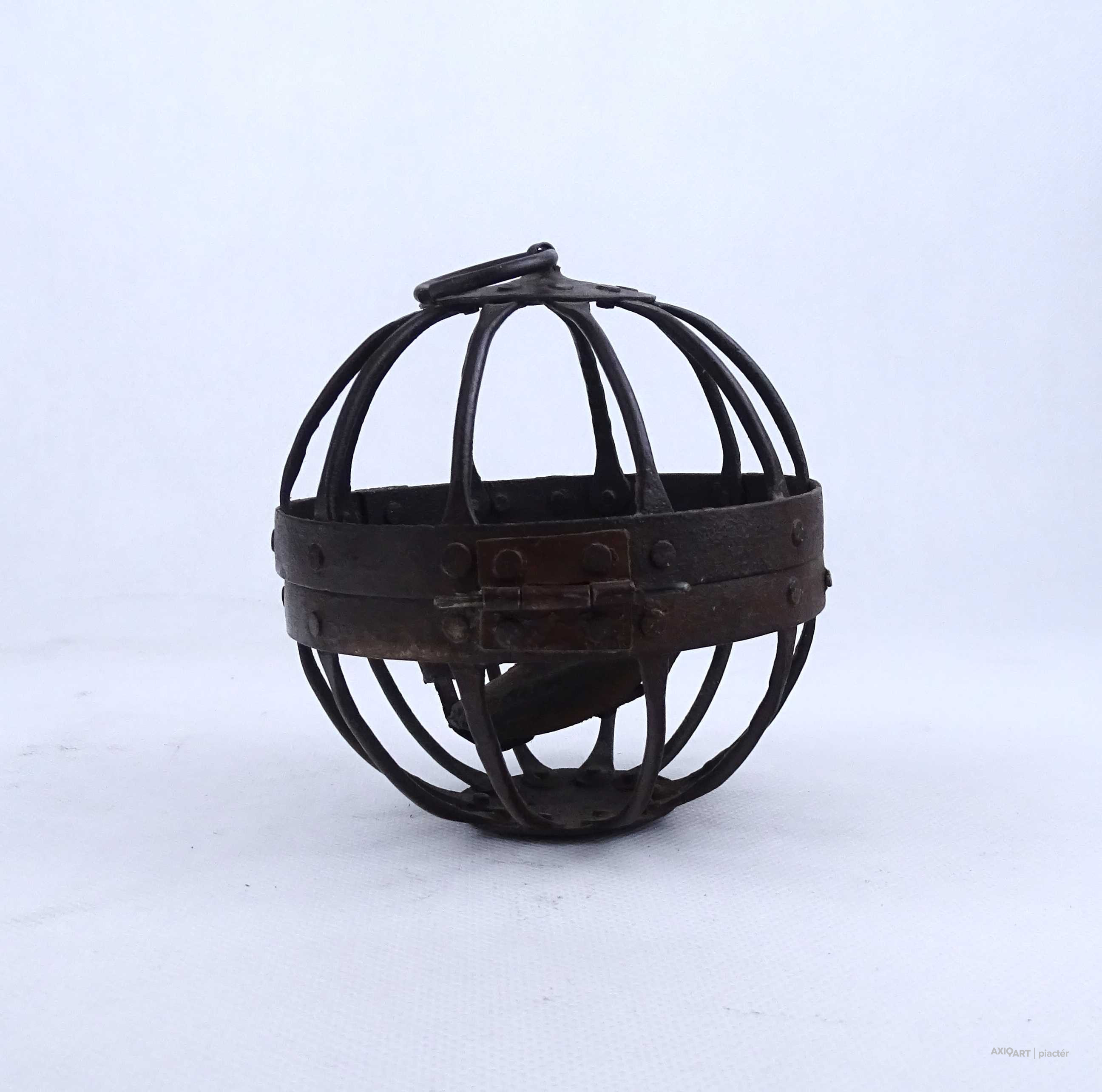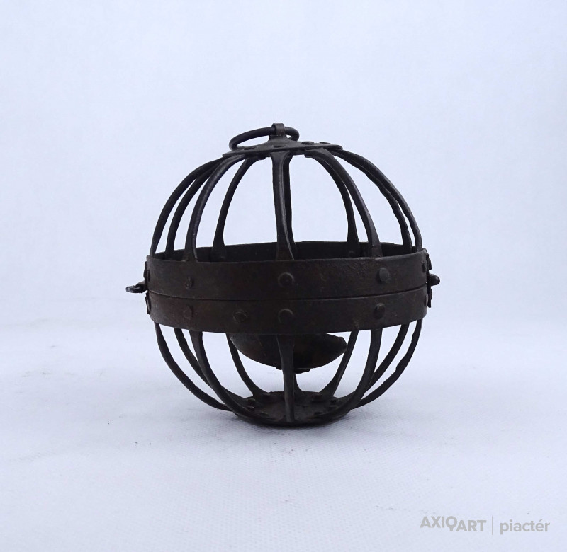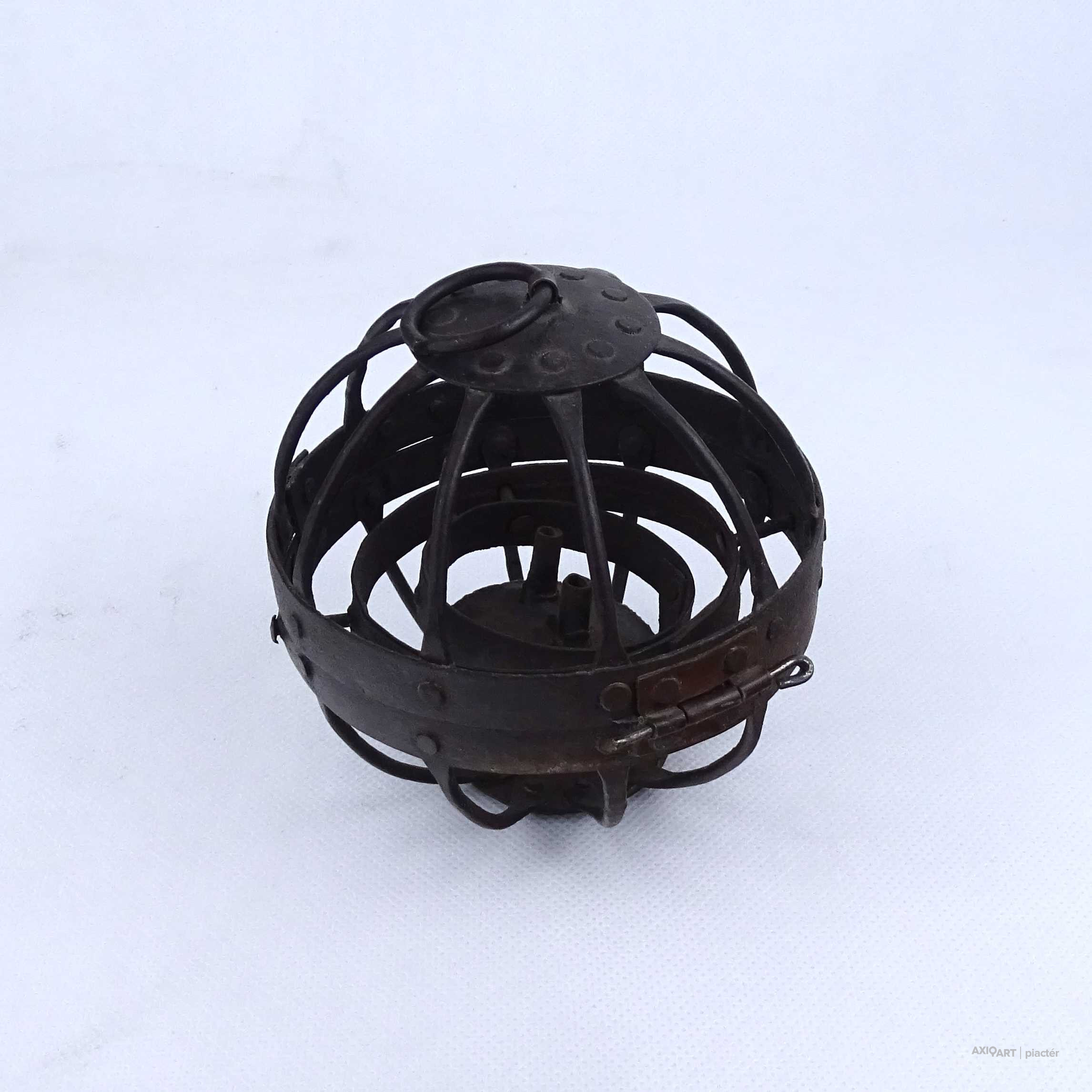Antik különleges gömb alakú kovácsoltvas tengerész függő gyertyatartó 11.5 cm