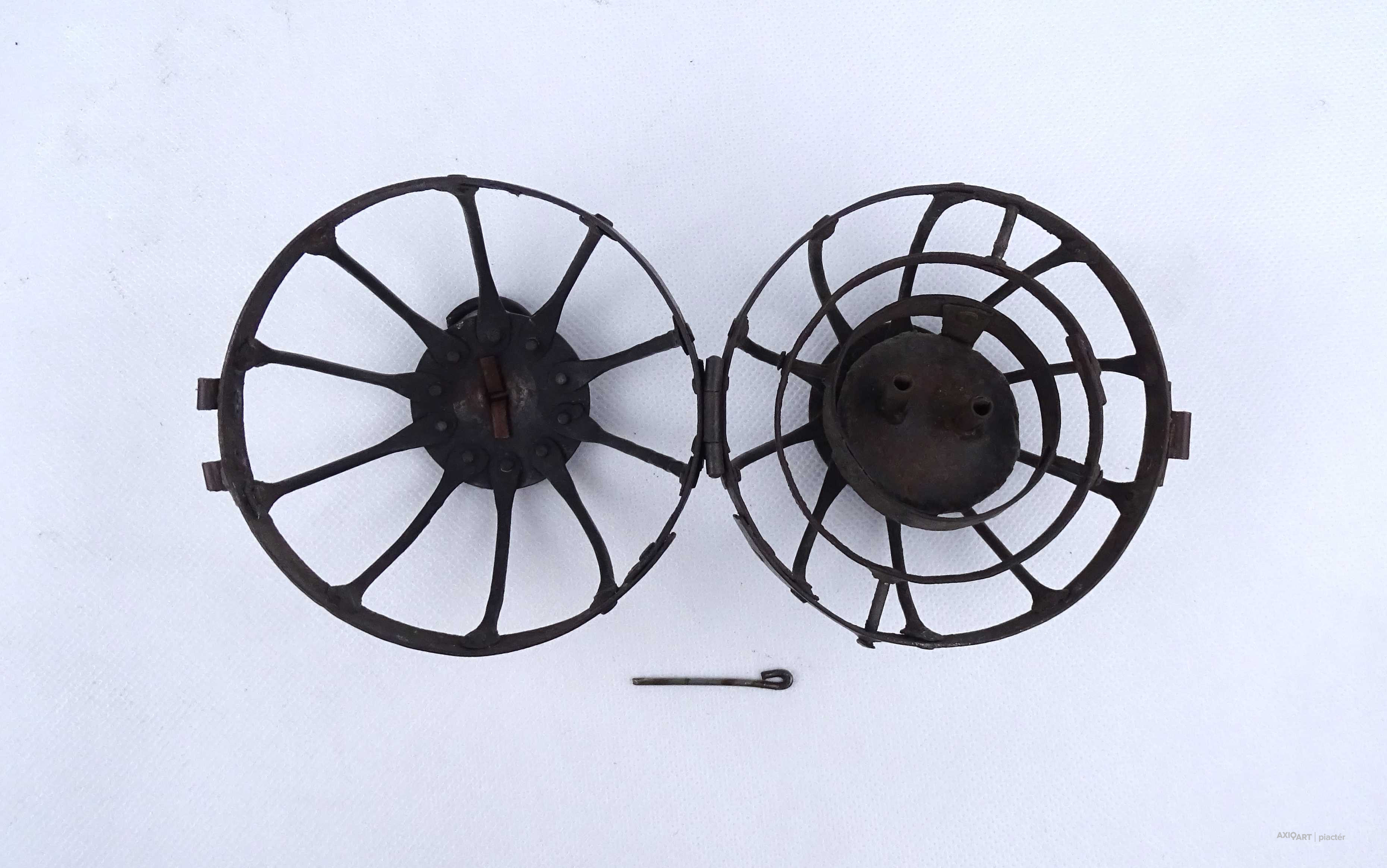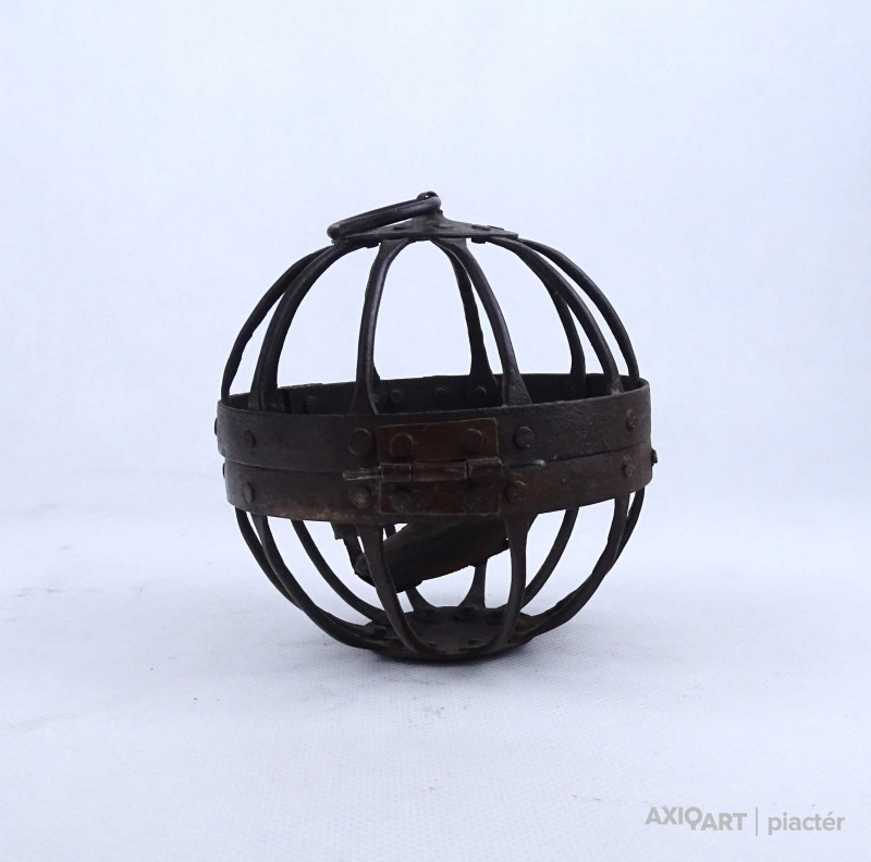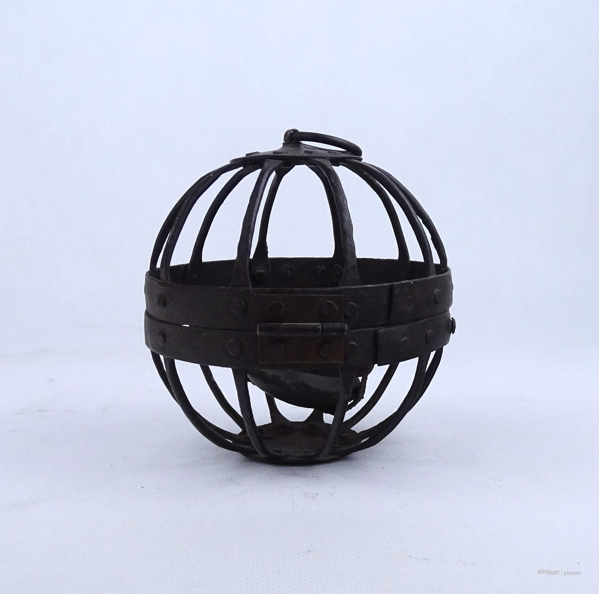 Antik különleges gömb alakú kovácsoltvas tengerész függő gyertyatartó 11.5 cm