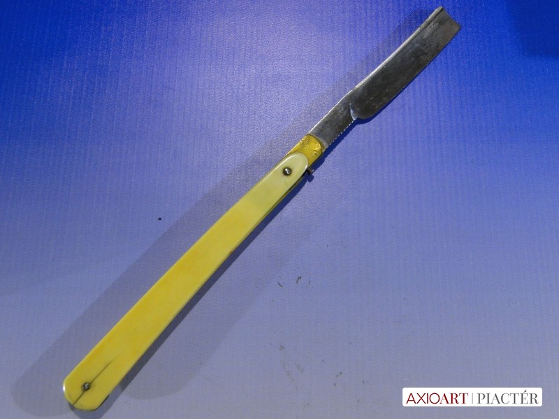Antik ritka, különleges kialakítású csontnyelű figaró eszköz, kellék, régi kinyitható borotva.