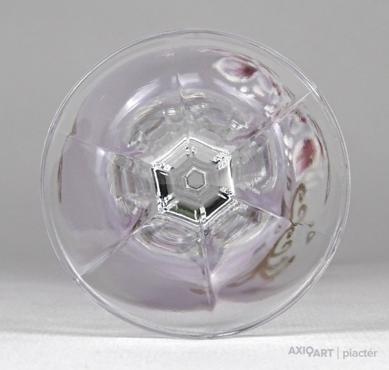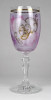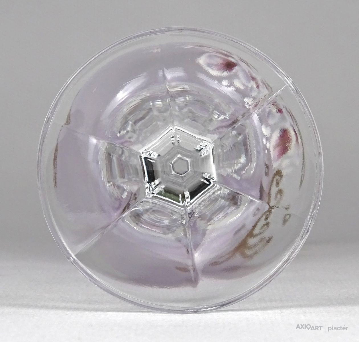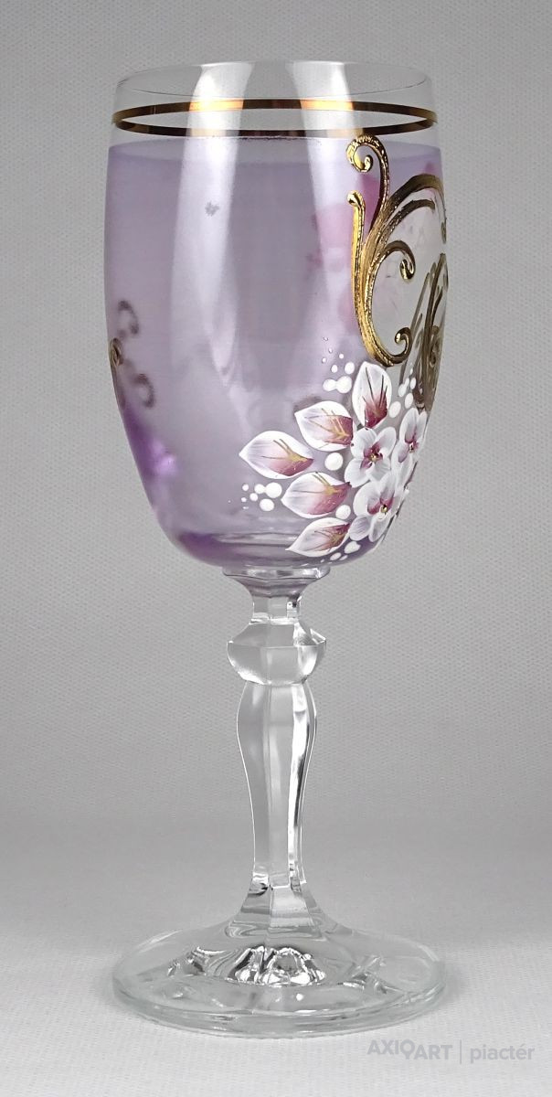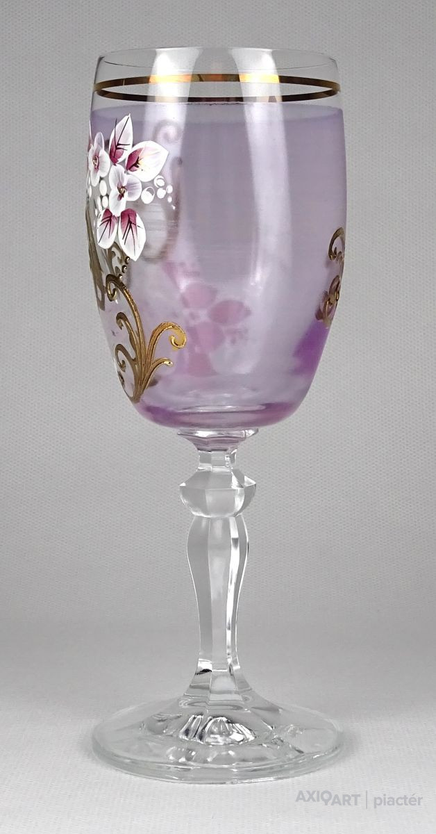 Hibátlan állapotú, nagyon dúsan aranyozott jellegzetes mintájú talpas pohár, díszpohár. Oldalát 60-as szám díszíti.