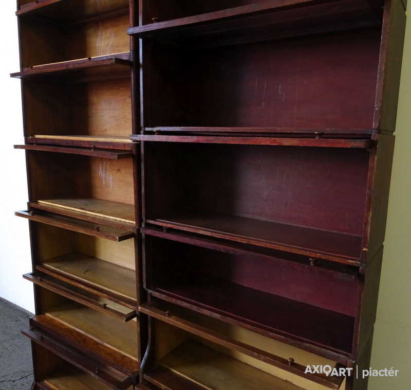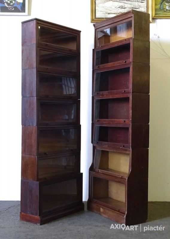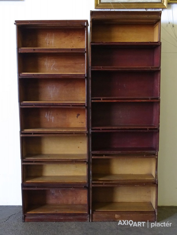 Antik hét elemes Lingel szekrény, kettő darab. Több darabból összeépített darabok. Nem egységes méretűek. A szintek többsége össze van szögelve. Több száz könyv tárolására alkalmas.