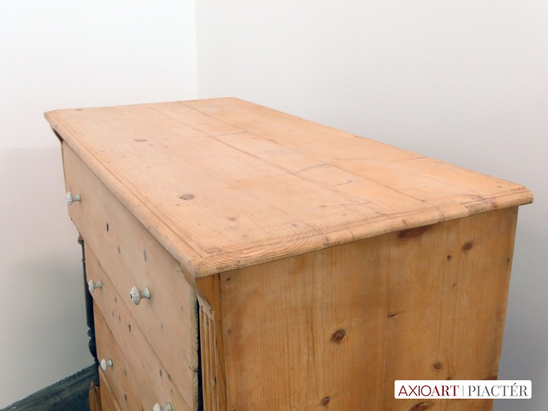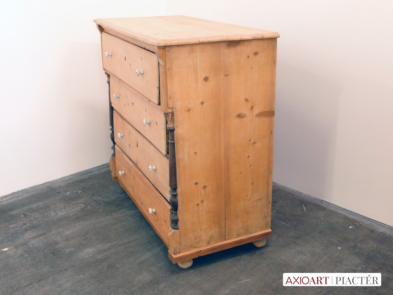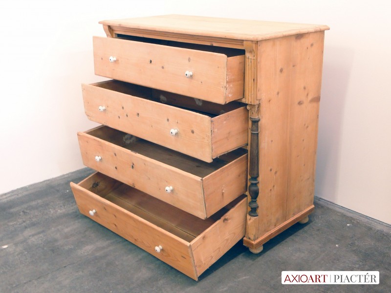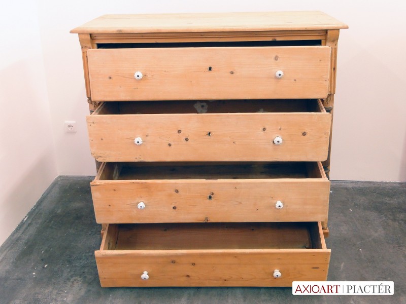 Antik parasztbútor, régi fenyő sublót, négy fiókos, porcelán gombos fenyőfa komód.