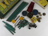 [1N288/X195] Nagyon ritkán előforduló gyűjtők figyelmébe ajánlott antik MARKLIN fémépítő játék szett, kreatív készségfejlesztő fém játék, dobozában, az 1920-as évekből. A dobozban MARKLIN feliratos pici fém doboz, pléh doboz és eredeti MARKLIN használati utasítás is található. A dobozon kívülről felirat: MÄRKLIN METALLBAUKASTEN 1 GEBR. MÄRKLIN & CIE. G.M.B.H. GÖPPINGEN (WÜRTT.) FABRIK FEINER METALLSPIELWAREN Súly: 1.785 kg A doboz mérete: 27 x 35 x 3,5 cm