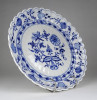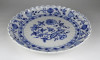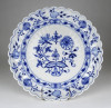 Kék-fehér hagymamintás, hibátlan állapotú, antik Meisseni porcelán süteményes kínáló tál, asztalközép kínáló tál, tortatál.