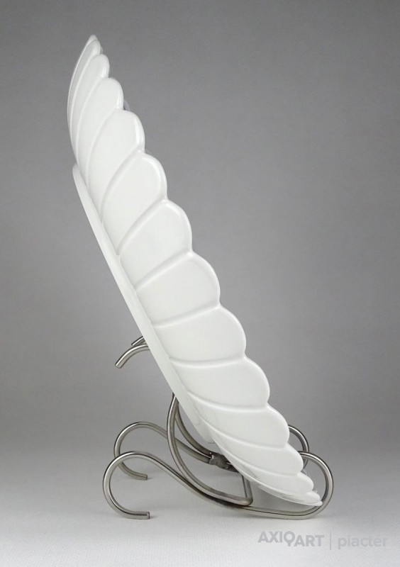 [1E331/UZ-N] Hibátlan állapotú, bordázott testű, fehér, kardos Meisseni porcelán váza. Alján kék kardos Meisseni jelzés. Kék színnel jelzés: WEIFS Mélynyomással formaszám: 50240 139AD Formatervező neve: Ludwig Zepner Magasság: 23.5 cm Szélesség: 11.5 cm Súly: 0.598 kg Ludwig Zepner (született január 10-, 1931-es a Malkwitz közelében Breslau ; [1] † December 31-ig, 2010-es a Meißen ) német porcelán, iparművész és feltaláló. [2] Kerámia falfestmény "Wedding at Cana" Meissenben tartalmát Élet Az iskola befejezése után Zepner 1948-ban a meisseni porcelángyárban kezdett képezni a dombornyomás , a díszfestés és a modellezés területén, amely 1952-ig tartott . Az ezt követő látogatás a műszaki főiskolán Hermsdorf [3] 1952-1954 követte a tanulmány a tervezés, a művészeti főiskolán Berlin-Weissensee . Nyugdíjba vonulásáig a meisseni porcelánmanufaktúrában tervezőként dolgozott. Tíz nappal 80. születésnapját, Ludwig Zepner meghalt december 31-én, 2010-ban Meißen . Eltemették január 7-én, 2011-ben a St. Martini temető (délre a régi város a Plossen ). [4] Nős volt, három gyermeke született. Szakmai és művészi fejlődés 1960-ban Peter Strang szobrászművész , Heinz Werner festőművész, Rudi Stolle és Zepner porcelánfestő alapította meg a „ kollektív művészeti fejlődést ”, amely később Volkmar Bretschneider virág- és gyümölcsfestőt is magába foglalta . [5] Együtt valósították meg a Century Service-t , [6] Hunters Service-t és a Porcelain Ensemble Arab Nights-t . Zepner emellett számos meisseni porcelánból és más kerámiából készült falfestményt is bemutat középületeken és középületeken. Forrás: Wikipedia.de