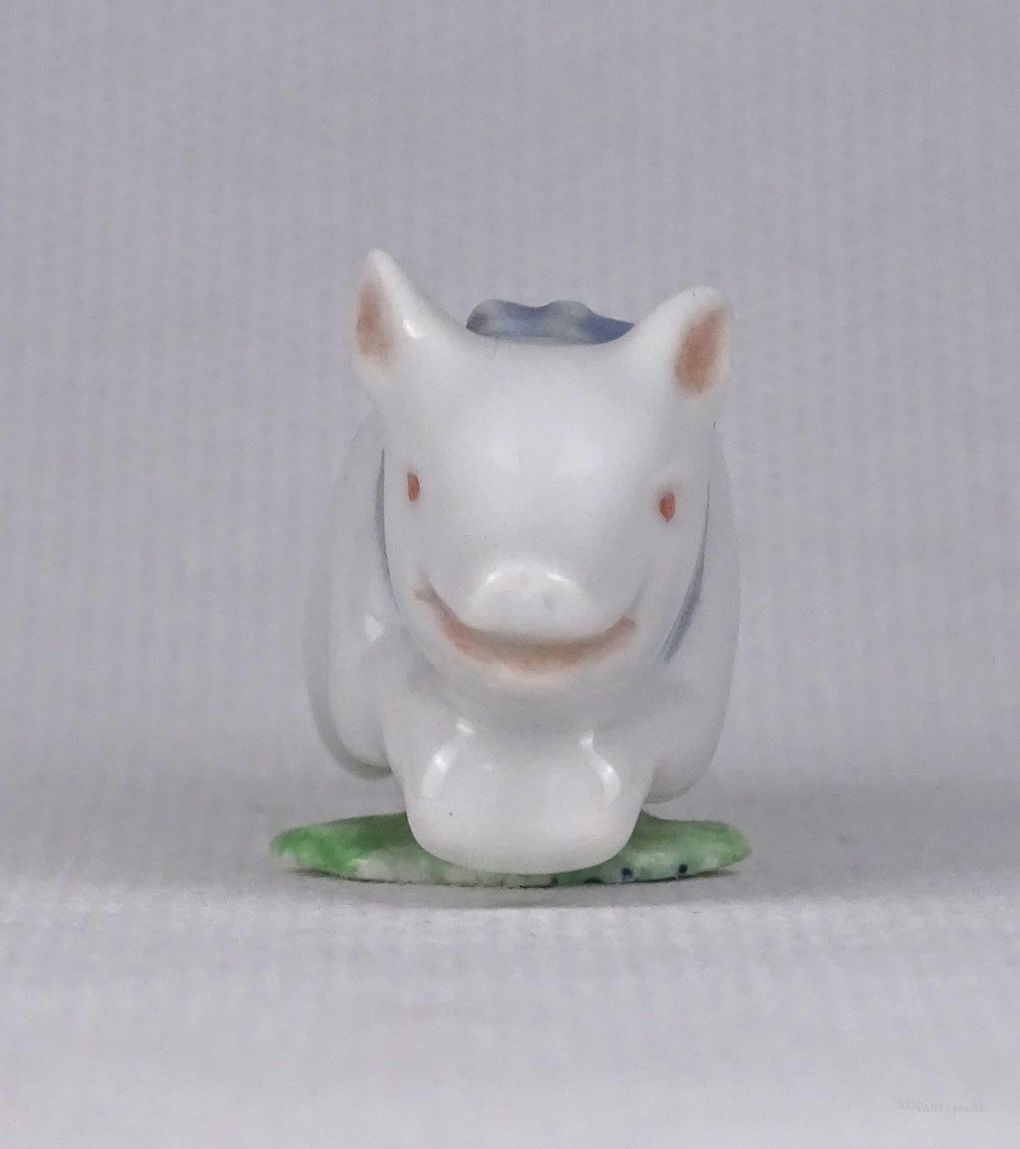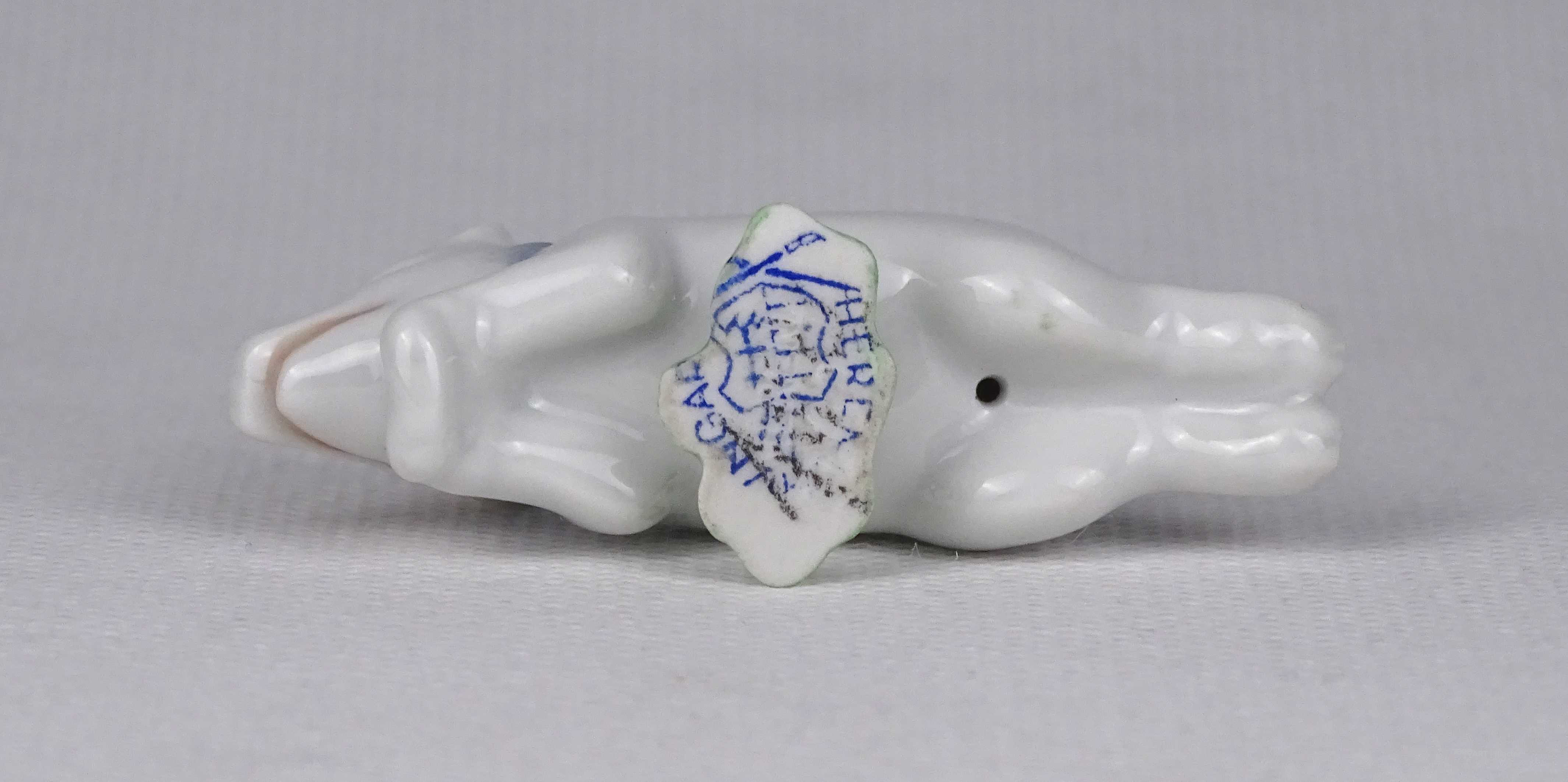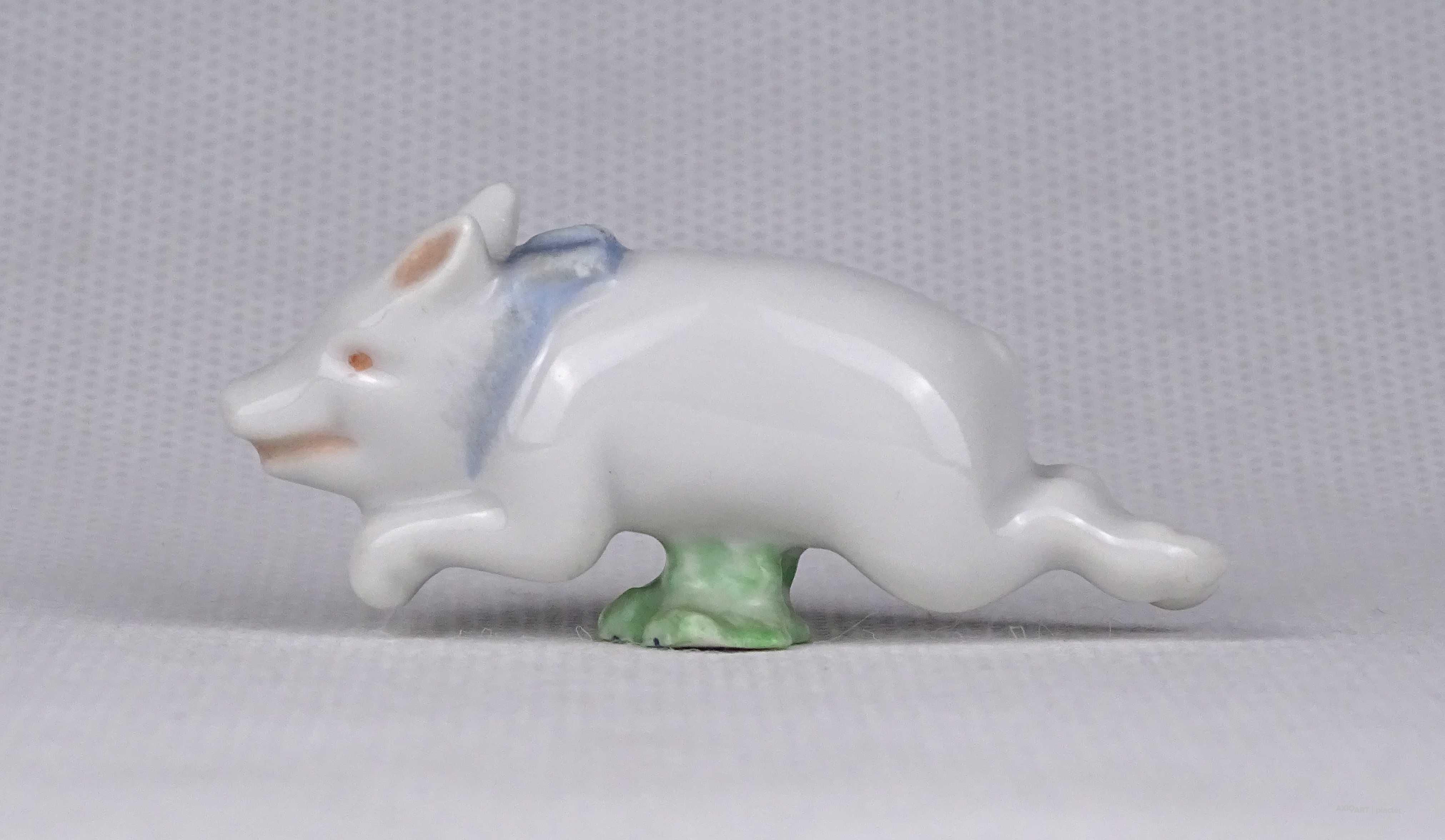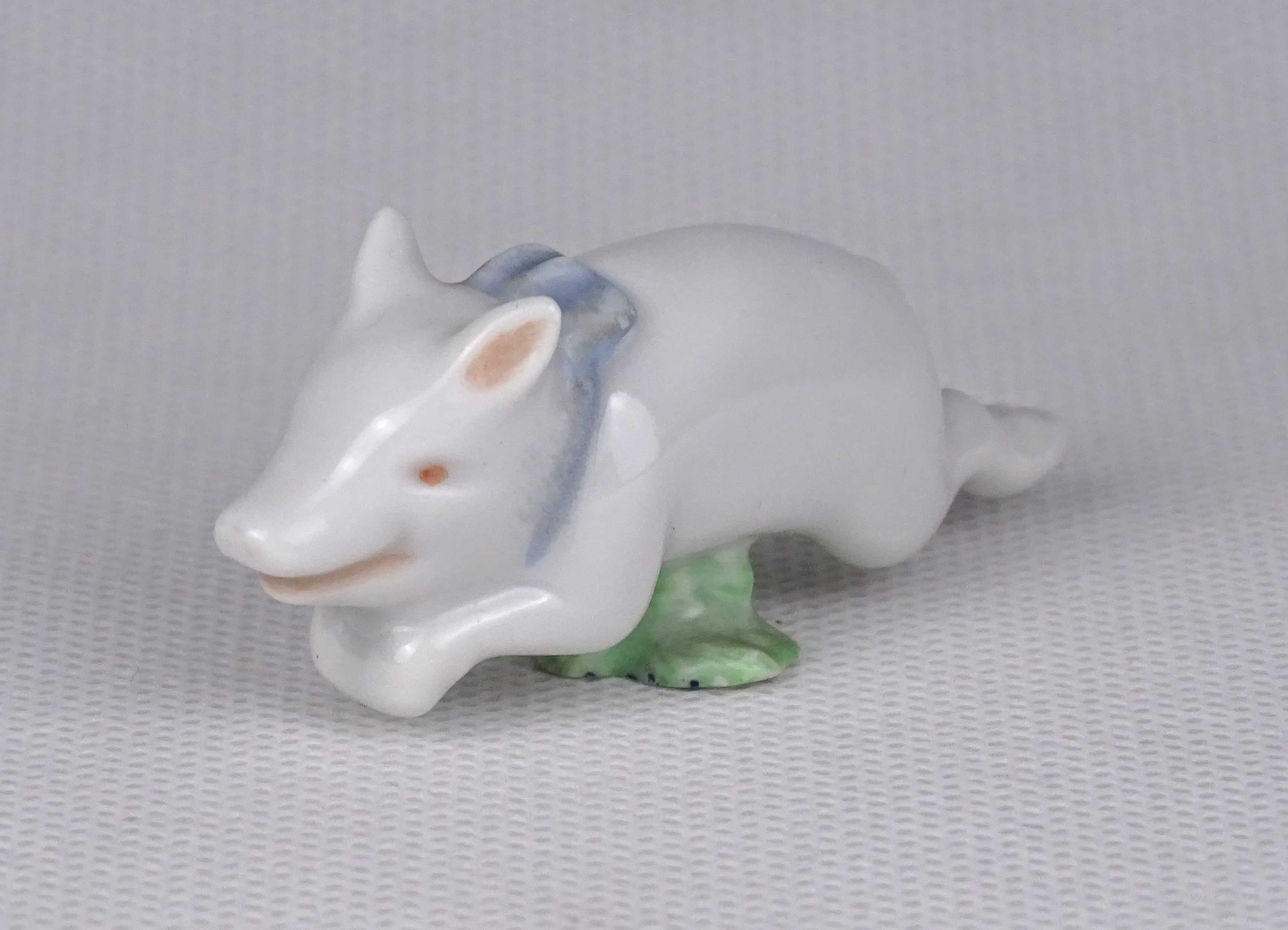 [1U860/Z016] Antik, hibátlan állapotú Herendi porcelán figura. Kézi festéssel készült újévi szerencsehozó mini malac, malacka figura. Alján kék Herendi márkajelzés: HEREND HUNGARY Magasság: 2 cm Szélesség: 2 cm Hosszúság: 6 cm Súly: 0.015 kg