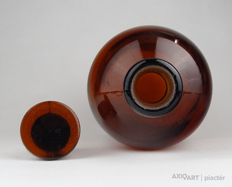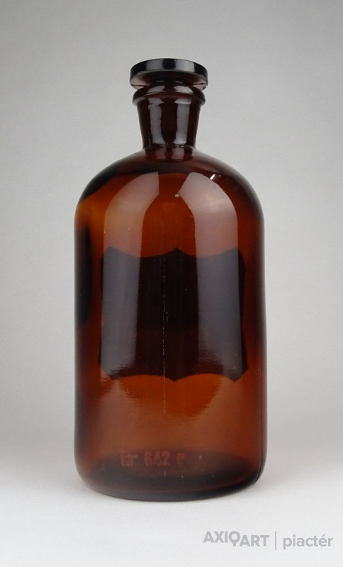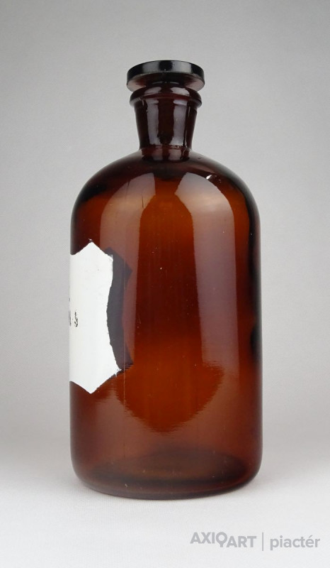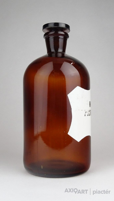 Régi, hibátlan állapotú, nagyméretű, literes, barna színű patika üveg, gyógyszerészeti tároló üveg.