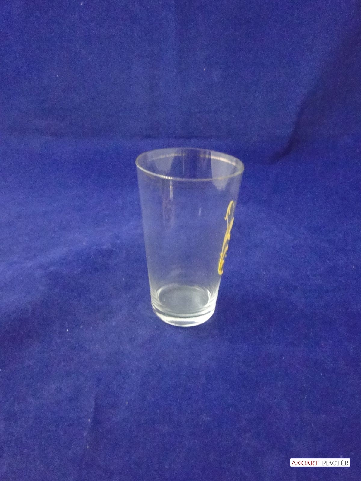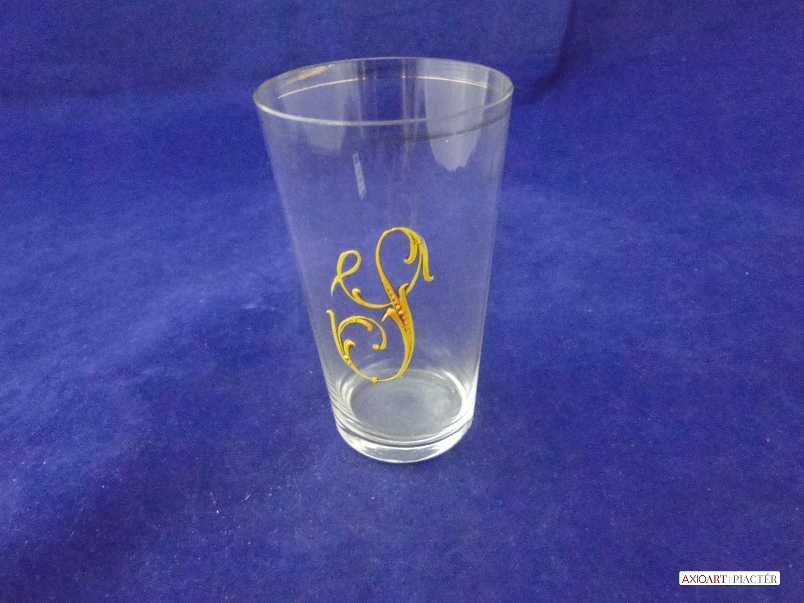 Gyönyörű, hibátlan állapotú arannyal díszített kézi festett üveg pohár. Oldalán iniciálés kezdőbetű, monogram: S