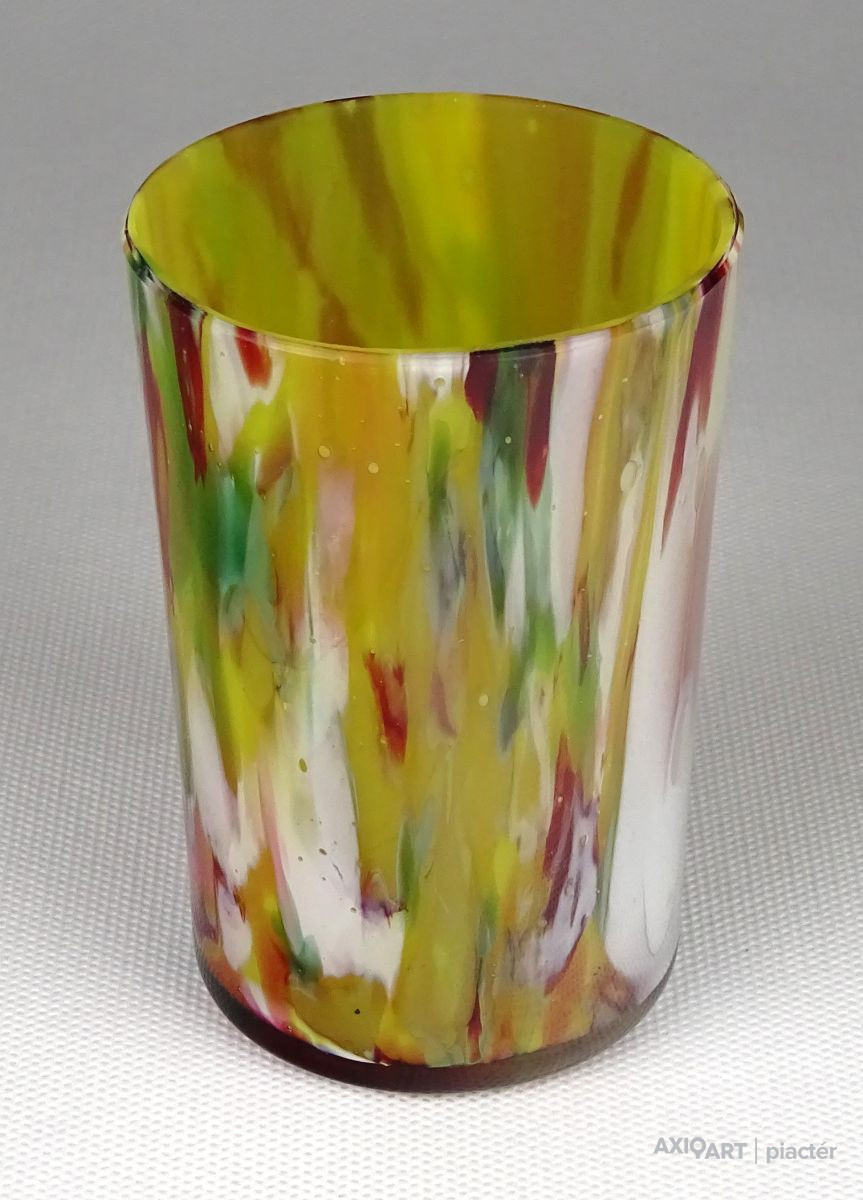 Antik szép állapotú fújt, rétegelt, színezett, csorgatott üveg pohár.