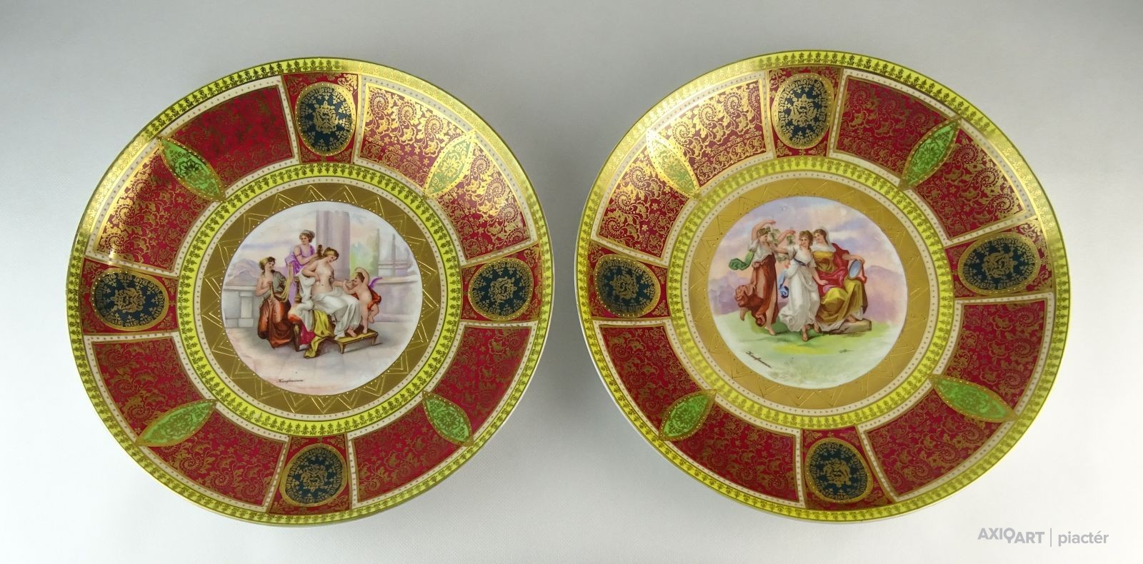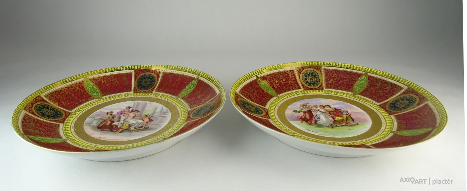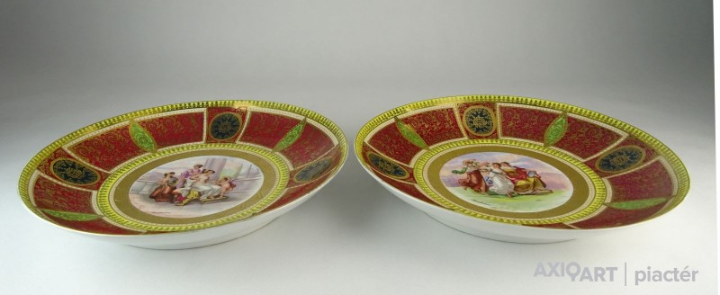 Antik nagy méretű Altwien dísztál pár 34 cm