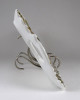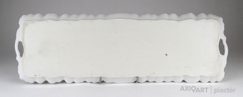 [1O746/X177] Régi, szép állapotú, nagy méretű, két füles, fehér színű, jelzetlen porcelán kínáló tál, tálca. Gyönyörű fodros széle aranyozással díszített. Szélesség: 15.5 cm Hosszúság: 47.5 cm Súly: 0.935 kg
