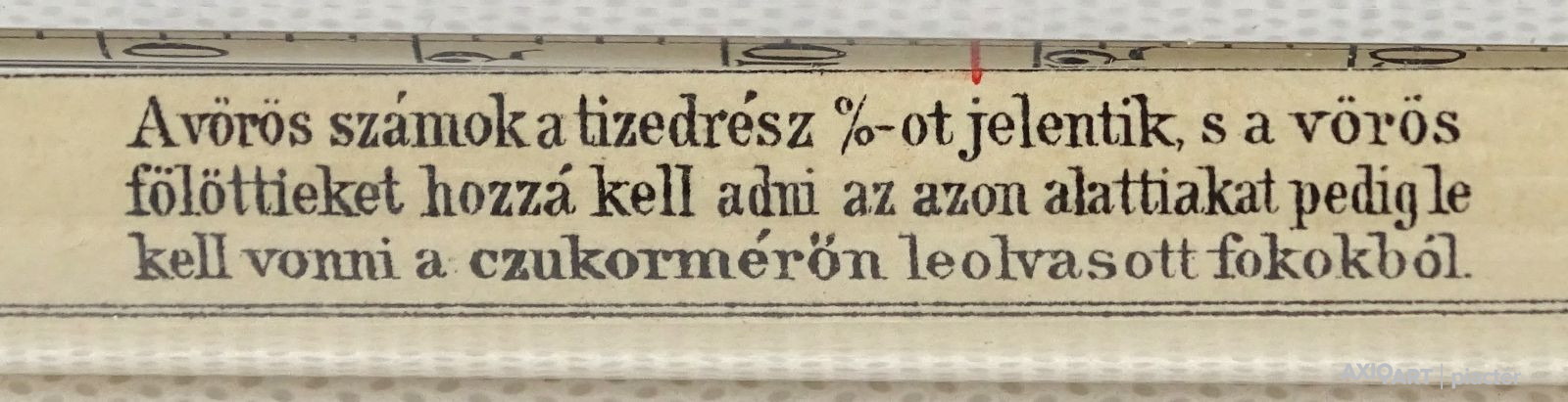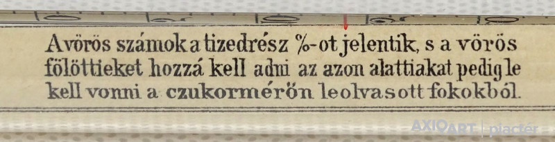 Antik nagyméretű Calderoni üveg cukorfokmérő fa tokjában 1902