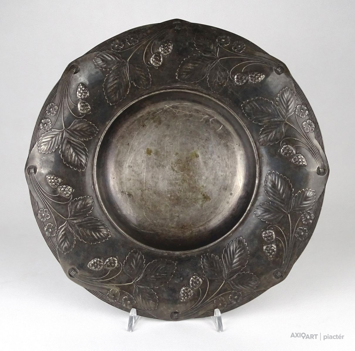 Antik nagyméretű ezüstözött jelzett Szandrik alpacca gyümölcskínáló tál 31 cm