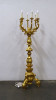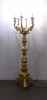 [1V029/BX-6] Antik, rendkívül díszes, hatkarú, nagy méretű, laparanyozott fa testű kandeláber, gyertyatartó hatású állólámpa. A vezetékezése korszerűsítve van, az egész lámpa szakszerűen lett felújítva, restaurálva. Magasság: 179 cm Szélesség: 55 cm Súly: 18 kg