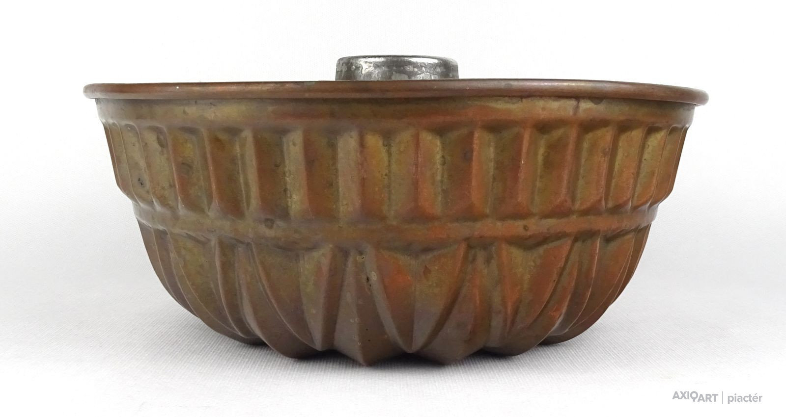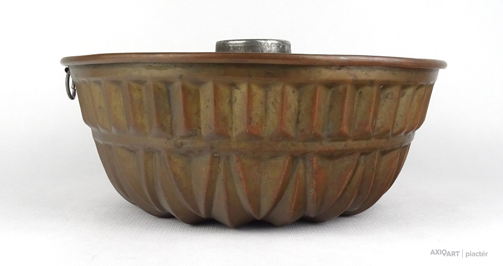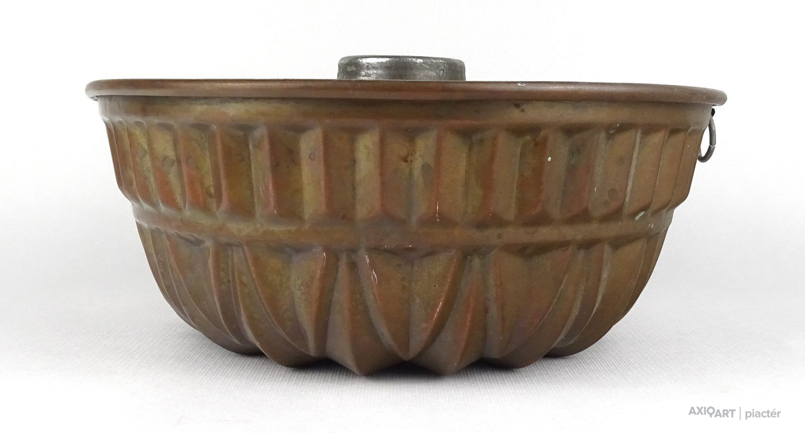 Antik nagy méretű konyhai, cukrászati eszköz. Akasztási lehetőséggel rendelkező sütemény sütő forma. Belső felülete ónozott. Kuglófforma.