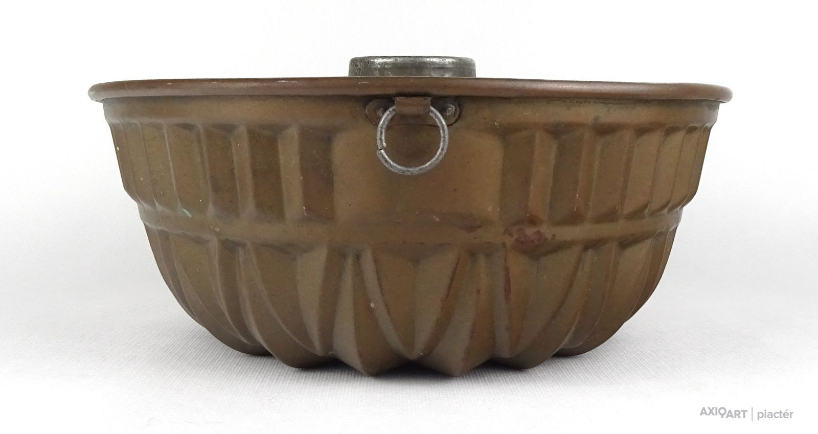 [1R909/X329] Antik nagy méretű konyhai, cukrászati eszköz. Akasztási lehetőséggel rendelkező sütemény sütő forma. Belső felülete ónozott. Kuglófforma. Magasság: 12.5 cm Szélesség: 27.5 cm Súly: 0.825 kg