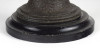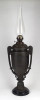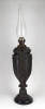 [1J995/UZ-N] Antik öntöttvas testű nagy méretű, urnaváza alakú petróleumlámpa üveg cilinderrel. A levehető tető alatti üveg tartályrész hiányzik. A lámpa egy fekete márványtalapzaton áll. Magasság: 65 cm Szélesség: 18.5 cm Súly: 4.255 kg