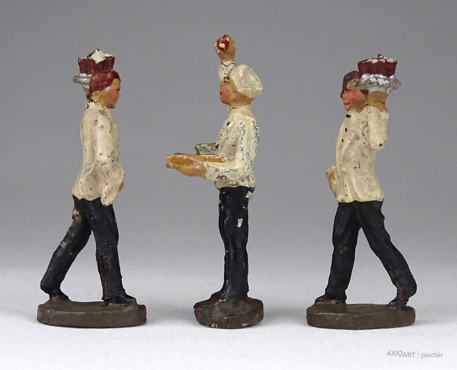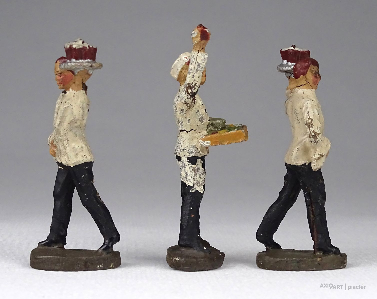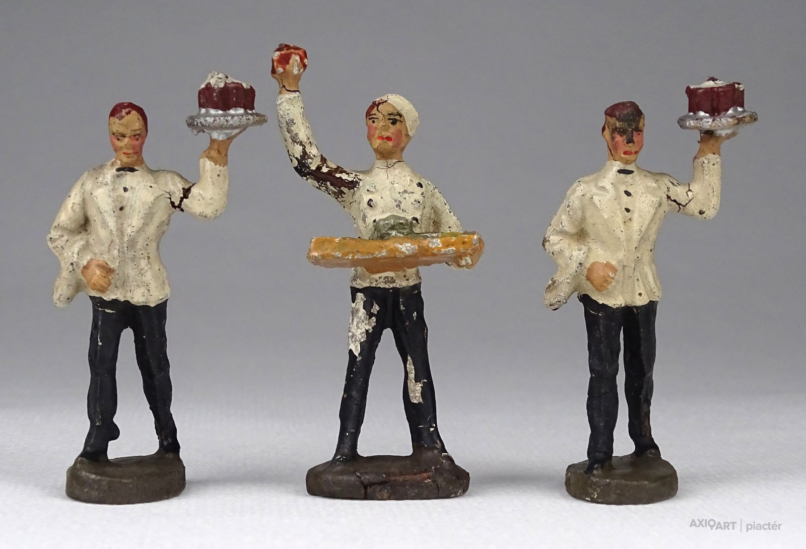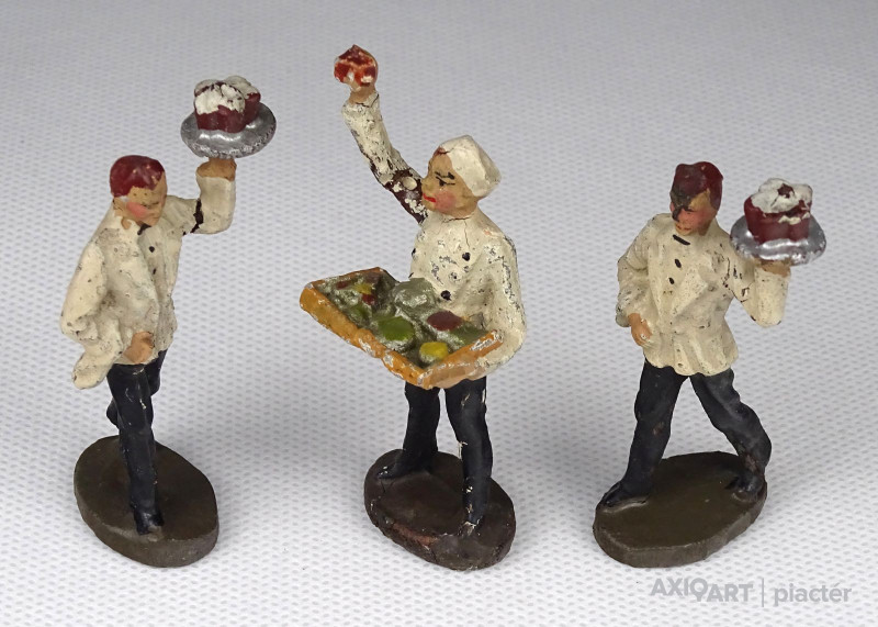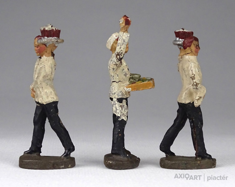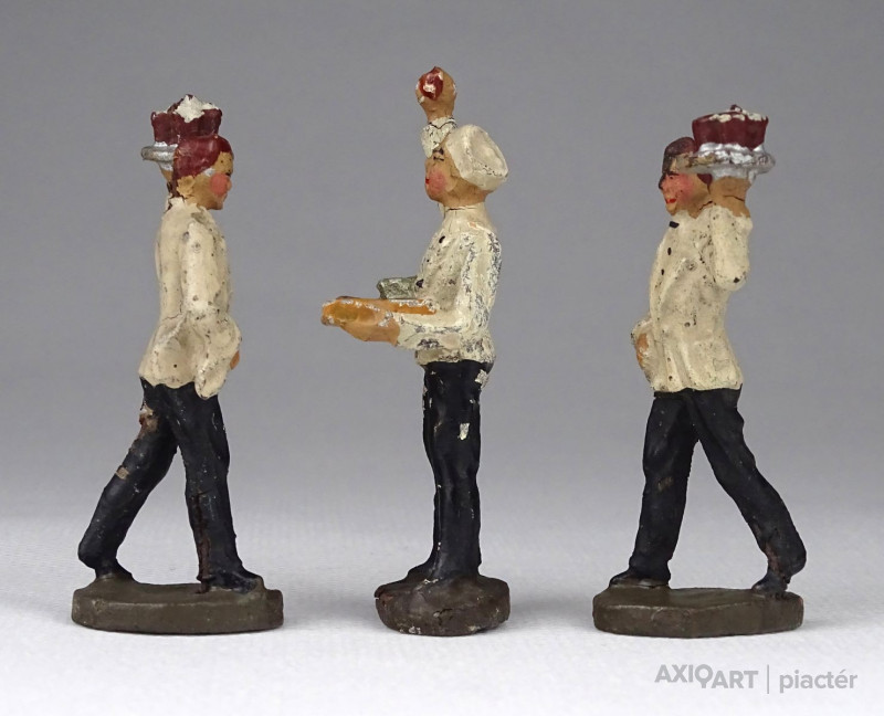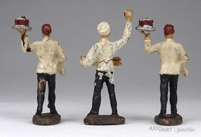Antik játékfigura csomag, három darab pincér figura. Két háború közötti figurák, fotó szerinti szép állapotban.