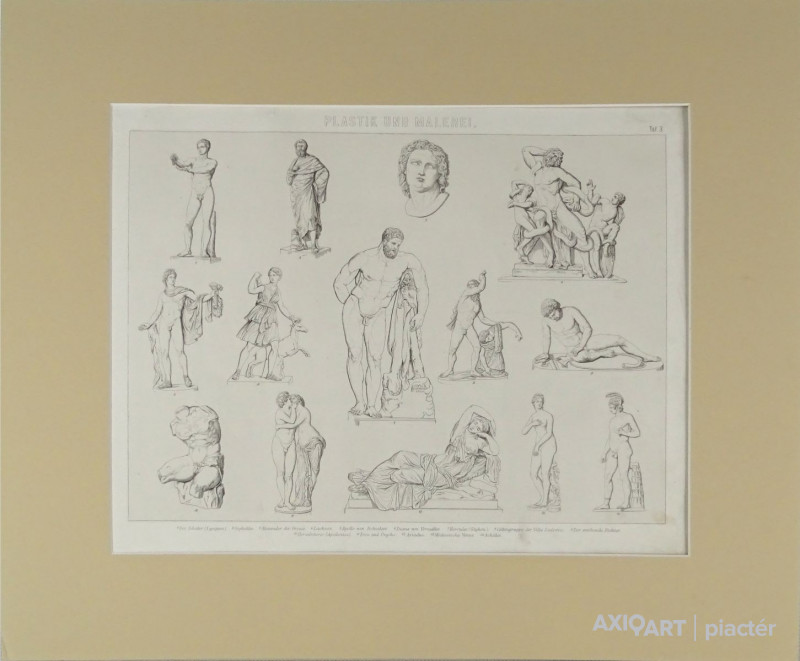 Antik német nyomat : Szobrok és festmények