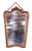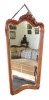 [0T484/KCS] Falra akasztási lehetőséggel rendelkező szép állapotú, faragott díszítéses neobarokk tükör. Benne eredeti, formakövető metszett, fazettázott tükör, vakfolt mentes szép állapotban. Magasság: 96 cm Szélesség: 61 cm