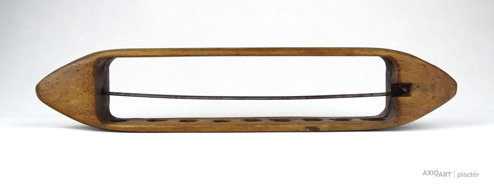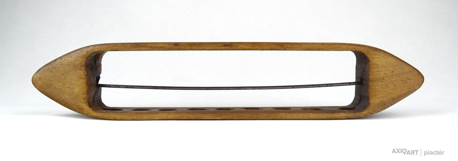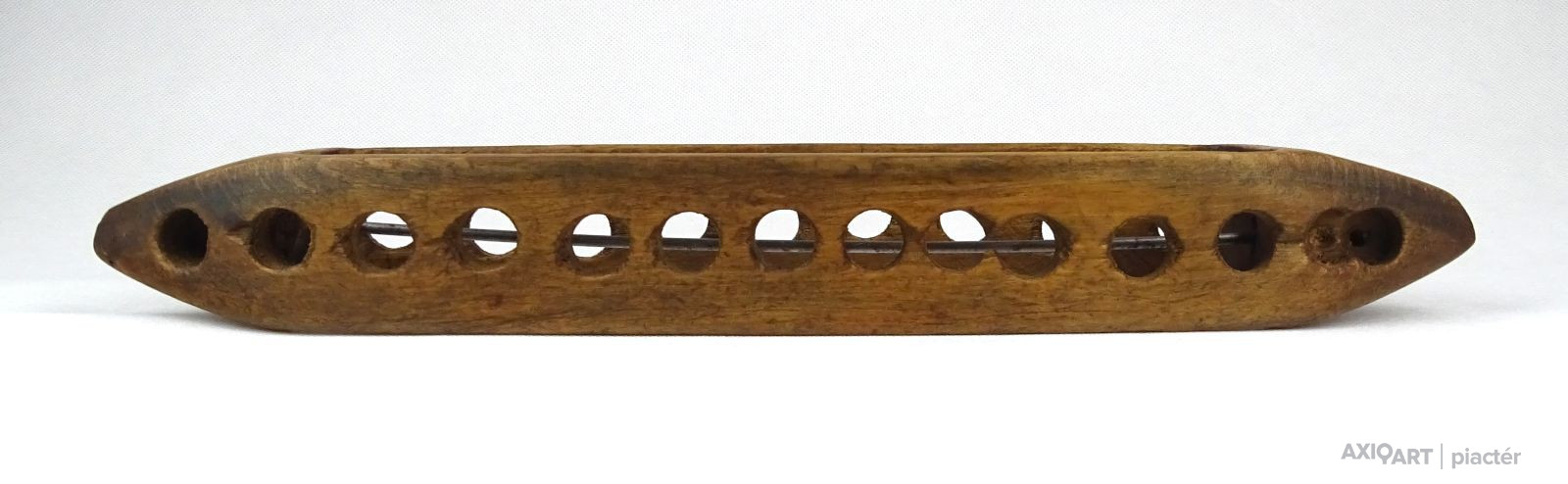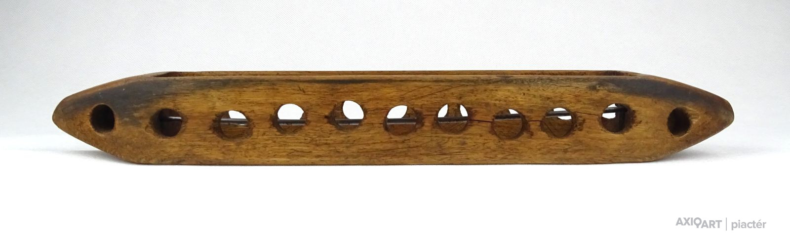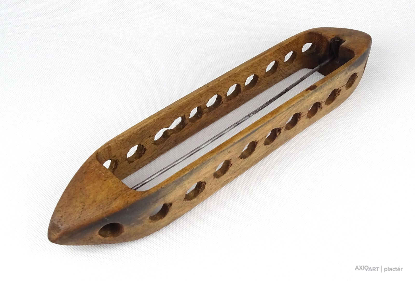 [1F339/X145] Antik, szép állapotú, nagy méretű kézi vetélő. Szélesség: 6.8 cm Hosszúság: 35.5 cm Súly: 0.215 kg