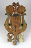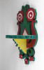 Antik népi trikoloros szív motívumos fafaragás falipolc