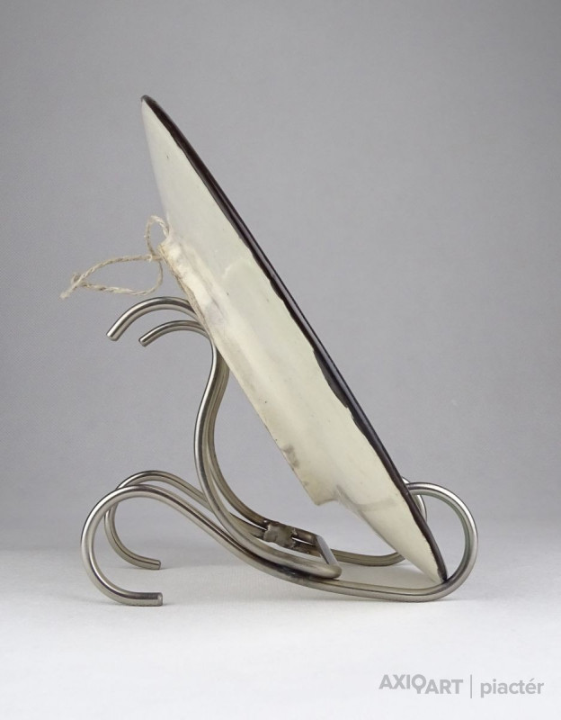 [1Y029/Z018] Olaj farost festmény, üveglap mögött, hibátlan képcsarnokos keretben. Hátoldalán Képcsarnok Vállalat papír címkéje: A művész neve: SCHÉNER MIHÁLY A kép címe: TÁJ Magasság: 66.5 cm Szélesség: 86 cm Súly: 6.54 kg Schéner Mihály festő, grafikus, szobrász, keramikus, bábtervező Medgyesegyháza, 1923-01-9 Elhalálozott: Budapest, 2009. május 11. Honlap: http://www.kormendigaleria.hu/kiadvany.html 1942-1947: Magyar Képzőművészeti Főiskola, tanára: Rudnay Gyula. 1978: Munkácsy-díj; 1984: érdemes művész; 1989: kiváló művész; 1995: Kossuth-díj. 1992-től a Magyar Művészeti Akadémia, 1993-tól a Széchenyi Irodalmi és Művészeti Akadémia tagja. 1956-ig tanított. 1982: Nagyatádi Faszobrász Alkotótelep, 1985: Nemzetközi Acélszobrász Alkotótelep, Dunaújváros. A stílusában felismerhető, mégis sokféle műtárgyat létrehozó ~ gazdag, állandóan alakuló életműve a folyton változó világban helyét kereső, az alkotói szabadságot megvalósító XX. századi képzőművész példázata lehetne. Magát expresszív-szürrealista alkotónak nevezi. Egyaránt dolgozik festékkel, textillel, fával, fémmel. Rajzol, szerkeszt, farag, épít, gyúr, varr és ragaszt, felhasználja a mézesbábok öntőformáit. Festő, rajzoló, textilszobor- és bábkészítő, fazekas, asztalos, esztergályos. Háromlépcsős folyamatban gondolkozik: rajzban tervez, majd fest, szobrot készít, “formába önt”, mindig a végső plasztikai megoldást keresi. Ami állandó és mégis játékosan változékony megjelenésű Schéner művészetében, az a gyermekkori emlékek által meghatározott népi mesterségek iránti tiszteletet kifejező motívumkincs, a tárgyi folklór formakészlete, amely már-már kézjegyként ismétlődik munkáin. Mitologikussá nőtt képzelete új lényeket teremt, pl: a Pigulát, amely disznótestű, emberfejű teremtmény. Schéner festményein a szürrealista motívumokat konstruktív szerkezetbe rendezi, a geometriát és az organikus természeti motívumokat egyaránt beépíti műveibe. A népi, népművészeti formakincsből merített lovas huszárok, betyárok, szegénylegények cifra szűr mentéje, piros csákója, fekete csizmája, az önálló életet élő zsinórdíszek és mézeskalács bábok, a kiskocsik a gyermekkori vásárok, búcsúk színes forgatagába vezet. A primér motívumokat aztán felváltják a vastagon felhordott felületbe karcolt jelek, vonalhálózatok, amelyek a játszó gyermek homokba rajzolt ábráit, a pásztorember fába vésett üzeneteit, az ősember barlang falába rótt mágikus jeleneteit idézik meg. A művész pillanatnyi érdeklődésének megfelelően a színek búvópatakként tűnnek el és jelennek meg ismét. A 60-as években leginkább a formákkal való játék érdekelte, a festmények felülete egyre gazdagodott: a táblaképek felületén applikációk jelentek meg, vagy lemállasztott rétegek hagyták maguk után hiányukat, motívumok nélküli ősformák, archetipikus képzetek bukkantak fel művészetében. A véletlenszerűnek látszó rétegekkel való játék azonban tudatos komponálás eredménye, amely később nyilvánvaló ritmusnak és formai szerkesztettségnek adja át a helyét, mint a Törvénytáblák c. sorozaton. A különböző művészi kifejezési formák egymásra termékenyítő hatással vannak, át- meg áthatják egymást. Textilszobrai, amelyekkel új műfajt teremtett, ugyanazzal az automatikus, expresszív-szürrealista módszerrel készülnek, mint festményei. A hagyományosan a népművészetben alkalmazott anyag, a filc lehetőséget ad a népi formakincs felelevenítésére, amely azonban a művész különös szürrealista átiratában jelenik meg. A szívekkel kivarrt, zsinórdíszes Posztókotlós c. művén mézesbábok lógnak, hátán huszárok lovagolnak. Egész sor textilből készült kéz-plasztikát alkot, amelyeket az ujjakra rávarrt díszekkel öltöztet, személyesít meg. A színes-különös világból aztán ~ újra puritán képi és formai rendbe juttatja el a nézőt, majd nemsokára tépett, gyűrt, vágott, csorgatott, repedezni hagyott szenvedélyesen vonagló képi felületeket hagy hátra. Schéner készített apró gyermekjátékokat, térstruktúra-tereket, mászókákat is. A magyar népi formák mellett szürreális játékaiban gyakran alkalmaz görög mitológiai alakokat, “elkentaurosodott” lovakat, Gorgó-fejeket, sellőket, hárpiákat, Pán-ábrázolásokat. Schéner nemcsak saját művészetéről publikál, hanem művésztársairól is számos írása jelenik meg, elsősorban az Új Auróra c. folyóiratban, amelynek egy ideig főmunkatársa volt. Irodalom kiállítása, Magyar Építőművészet, 1962/4. Húsz év után, Művészet, 1965/4. BOZÓKY M.: ~, Tiszatáj, 1968/5. PERNECZKY G.: Nincs uborkaszezon, Élet és Irodalom, 1969. augusztus 8. BARÁNSZKY-JÓB L.: ~, Művészet, 1969/9. LÁSZLÓ GY.: ~ kaposvári kiállítása, Jelenkor, 1969/4. MAJOR M.: Pásztorok, betyárok, huszárok - kezek, Tükör, 1970. szeptember 15. FRANK J.: Bemutatjuk ~t, Élet és Irodalom, 1972. május 6. ról kiállítása ürügyén, Képzőművészeti Almanach, Budapest, 1972 Sötétkék kokasok, Élet és Irodalom, 1973. szeptember 9. MAJOR M.: ~ játékai, Élet és Irodalom, 1974. július 27. BARTA J.: Egy különös művész, Alföld, 1974/6. VADAS J.: Szárnykészítők, Élet és Irodalom, 1975. október 4. JUHÁSZ F.: A halál ellen játszani, Élet és Irodalom, 1975. május 17. PAP G.: Kincsek és műkincsek, Művészet, 1975/6. P. SZŰCS J.: Az utak kettéválnak, Művészet, 1978/3. Békési művészet, Művészet, 1978/7. SZAMOSI F.: ~ [kismonográfia], Budapest, 1978 VADAS J.: Játék a játékkal, Élet és Irodalom, 1979. augusztus 18. NÉMETH L.: ~ műveiről, Művészet, 1979/4. MIKLÓS P.: Mit akar ez a múzeum?, Művésze