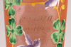 Gyönyörű, gazdagon díszített kézi festett virágos üveg pohár. Oldalán festett lóhere és madár díszítés, kopottas női név és dátum: KLÁRA 1916