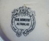 [0F138/X118] Antik, szép állapotú virágdíszes kék-fehér majolika fali tányér. Hátoldalán falra akasztási lehetőség. Alján fekete jelzés: AUG NOWOTNY ALTROHLAU PORZELLAN UND STEINGUT FABRIKEN Mélynyomással: NOWOTNY Szélesség: 23 cm Súly: 0.46 kg