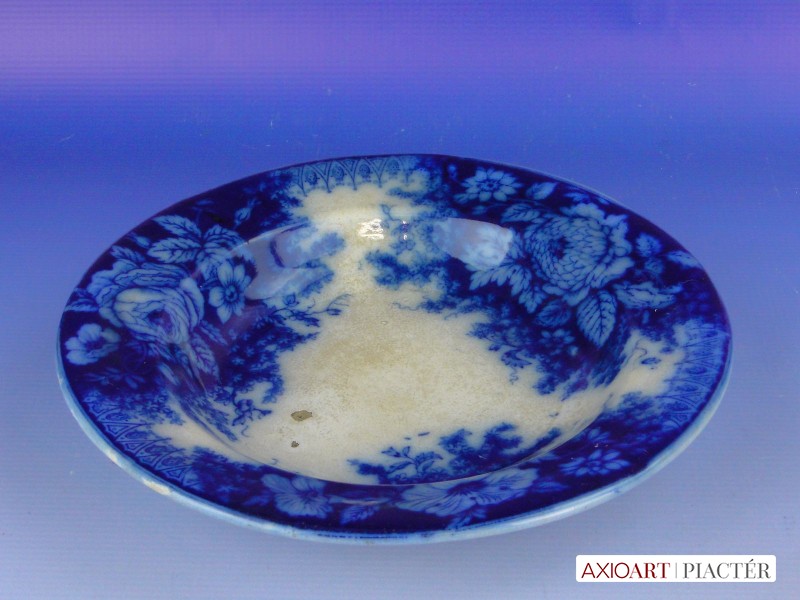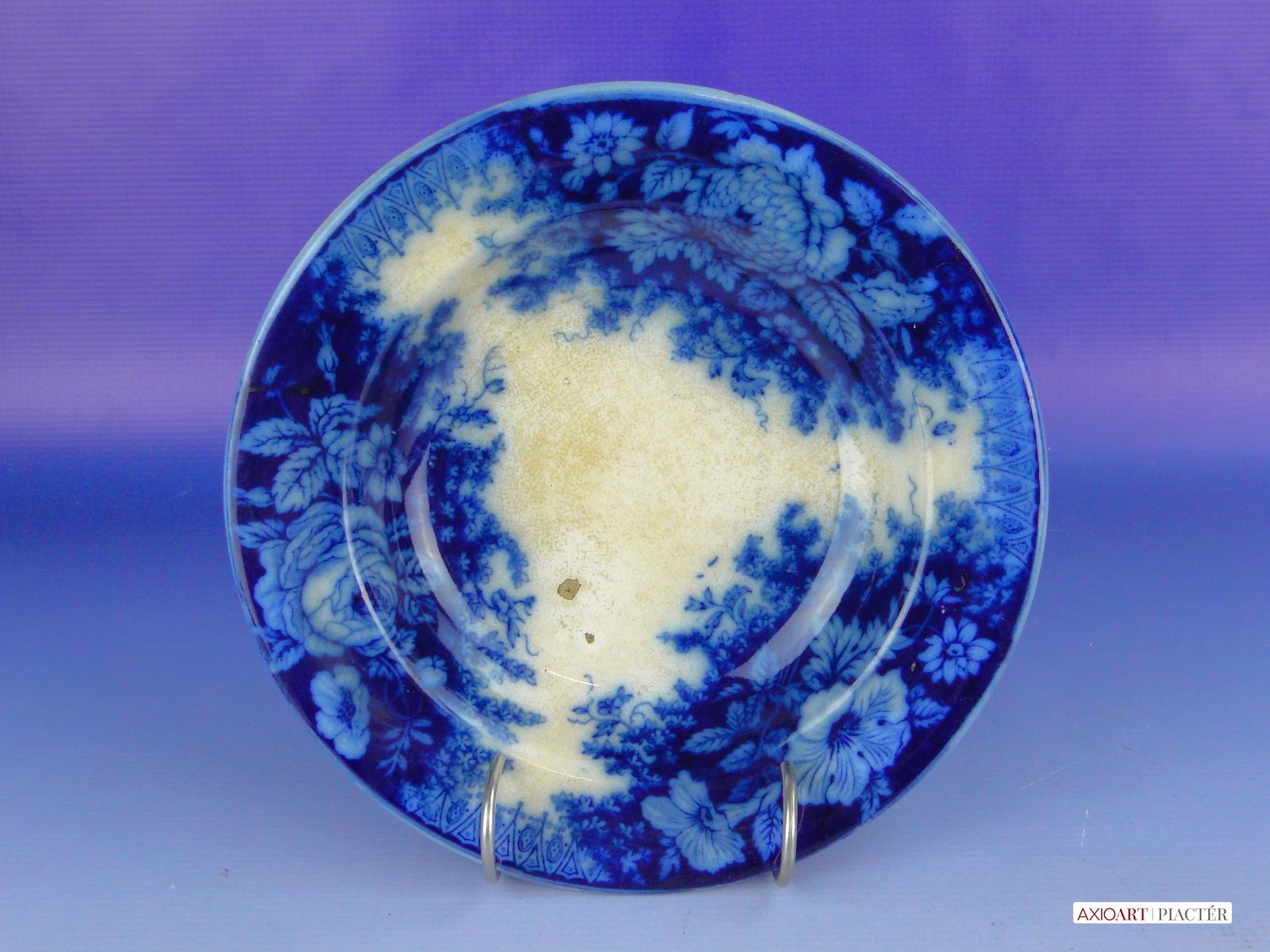 Antik, szép állapotú virágdíszes kék-fehér majolika fali tányér.