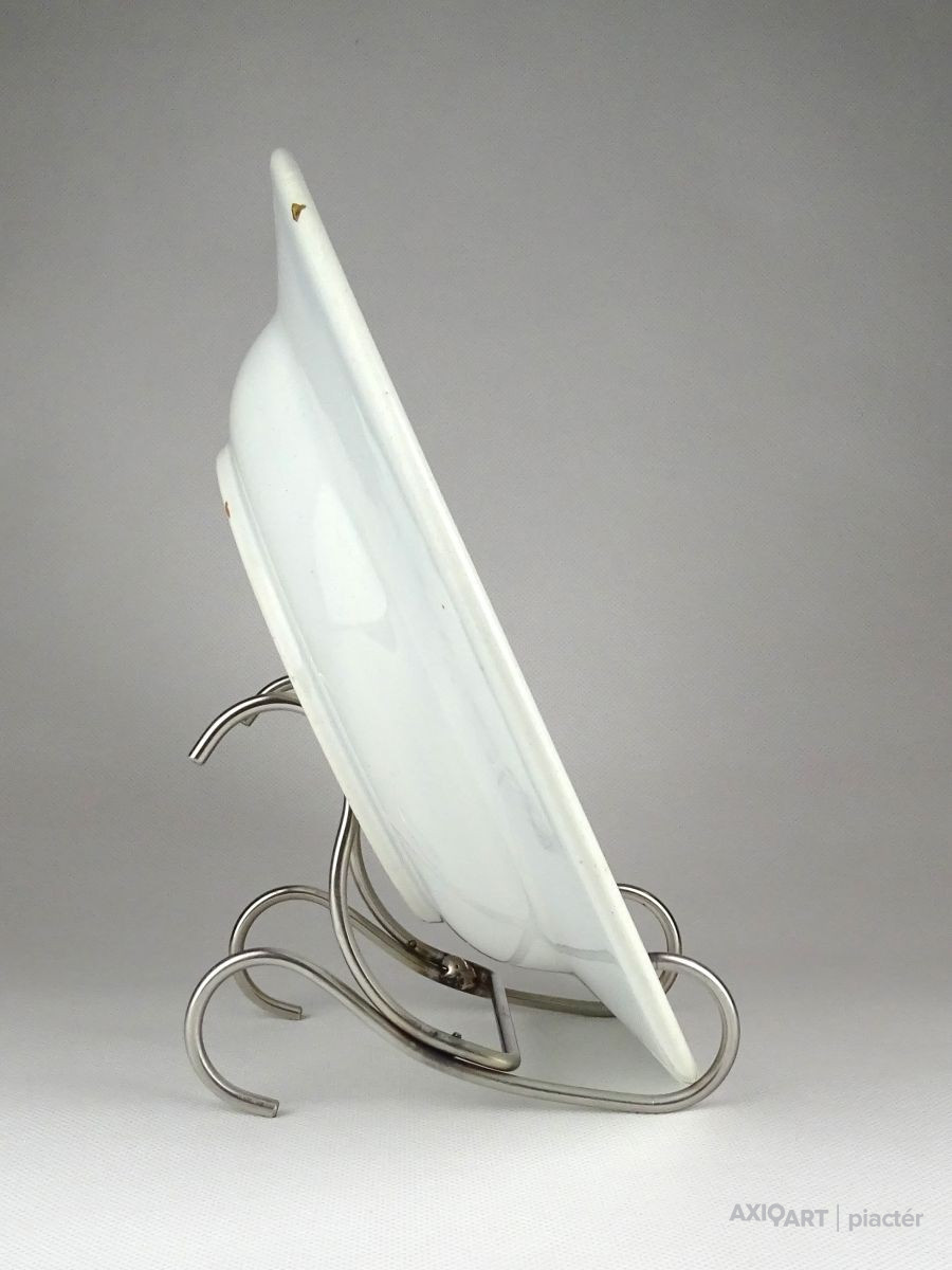 [1D448/X132] Régi, kézi festéssel díszített, virágdíszes, akasztási lehetőséggel rendelkező, porcelán falitányér az 1900-as évek első feléből. Alján hajszálrepedés található, festett felén nem látható. Alján koronás címerpajzsos mélynyomású jelzés: OPAQUE WILHELMSBURG Szélesség: 23.5 cm Súly: 0.36 kg