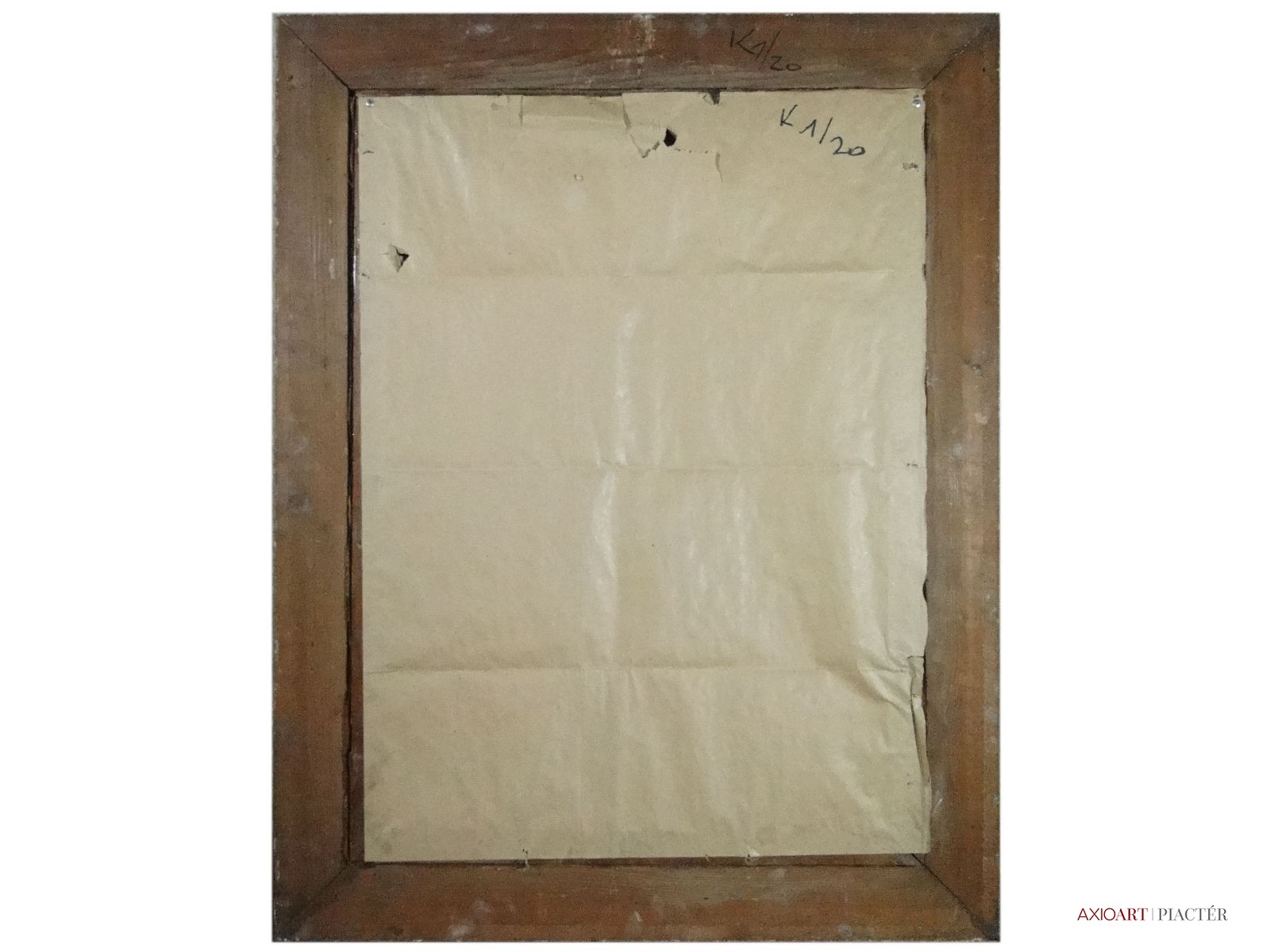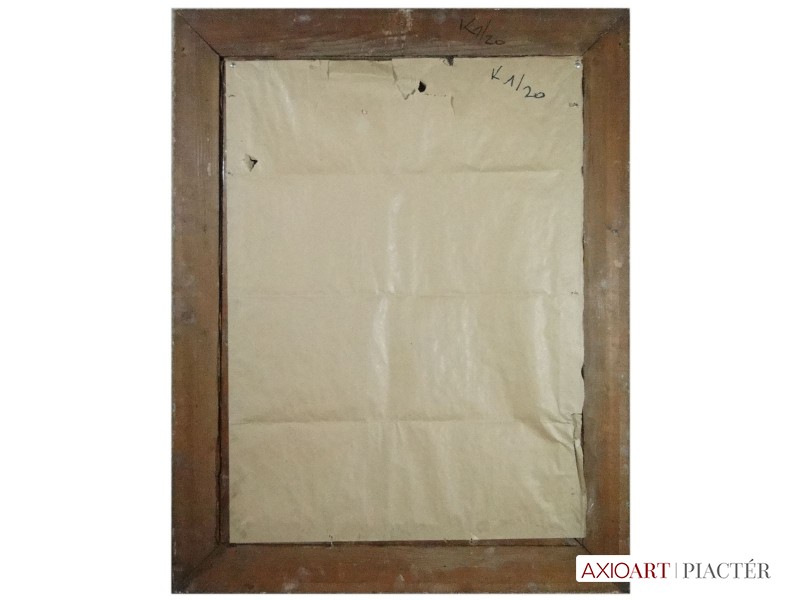 [FK0037/Z018] A kép mérete: 50 x 70 cm keret nélkül. Készült: Olaj, Vászon A kép Paizs László (Szentpéterúr, 1935) alkotása. Jelezve Jobbra lent "P. L." A festmény jó állapotban van. Keret: Ép A festmény hátoldalán a Képcsarnokvállalat címkéje található. Magyar festők és grafikusok életrajzi lexikona I-II. Festő. Tanulmányait a budapesti Iparművészeti Főiskolán végezte 1959-ben. Z. Gács György, Rákosy Zoltán és Szentiványi Lajos növendéke volt. A '60-as évek első felében hagyományosabb felfogású olajképeket festett, mozaikokat, freskókat, utóbb a pop-art körébe tartozó, a francia Arman munkáival rokon műveket alkotott. 1961 óta kiállító művész. Egyéni (Fényes Adolf Terem, Csók Galéria, Műcsarnok, Magyar Nemzeti Galéria, Halászbástya, Bástya Galéria, Vigadó Galéria, Budapest Galéria, Győr, Szombathely, Szeged, Zalaegerszeg, Duisburg, Aix-en-Provence, stb). és vegyes (Ernst Múzeum, Műcsarnok, Óbuda Galéria, Magyar Nemzeti Galéria, Csók Galéria, Vigadó Galéria, Székesfehérvár, Kaposvár, Pécs, Hódmezővásárhely, Firenze, Milano, Padova, Nápoly, Velence, Düsseldorf, Aachen, Genf, stb) tárlatokon vett részt. 1980-ban Munkácsy-díjjal jutalmazták, 1988-ban Érdemes Művész kitüntető elismerésben részesült. Munkáit őrzi a Magyar Nemzeti Galéria, a Fővárosi Képtár, a szombathelyi képtár, a pécsi Janus P. Múzeum, a székesfehérvári István Király Múzeum és a dunaszerdahelyi Kortárs Magyar Galéria. (H.B.: Műv, 1972/4, K.Gy.: Műv. 1977/2, K.G.: Műv. 1978/10, M.L.: Műv, 1983/5, R.G.: Műv, 1987/9, Sz.Gy.: Új Műv. 1995/4, MK) Magyar festők és grafikusok életrajzi lexikona I-II. Műgyűjtők és kereskedők kézikönyve Festő. Tanulmányait a bp.-i Iparművészeti Főiskolán végezte. Mozaikokat ferskókat, utóbb a pop-art körébe tartozó, a francia Arman műveivel rokon műveket alkotott. Mozaikok: a Szegedi Megyei Tanács, a Pécsi Óvoda, a Gödöllői Agrártudományi Egyetem. Freskók: Budapest - Csatárka úti Gyermekotthon. 1971-ben a Fényes Adolf Teremben volt kiállítása, 1983-ban pedig a szegedi Móra Ferenc Múzeumban nagyszabású tárlatokon mutatta be munkáit. 1988-ban érdemes művész kitüntető elismerésben részesült. (MK) Magyar festők és grafikusok adattára Az Iparművészeti Főiskolán végzett 1959-ben. Mozaikokat (Szeged, Megyei Tanács; Pécs, Óvoda; Gödöllő, Agrártudományi Egyetem), freskókat (Budapest, Csatárka úti Gyermekotthon), újabban a pop art körébe tartozó, a francia Arman műveivel rokon műveket alkotott. 1971-ben a Fényes Adolf Teremben nyílt kiállítása. 1983 februárjában a szegedi Móra Ferenc Múzeumban megrendezett nagyszabású tárlaton mutatta be alkotásait. 1988-ban érdemes művész kitüntető elismerésben részesült. - MK Művészeti lexikon I-IV. (Szentpéterur, 1935. dec. 26.- ): festő. Az Iparművészeti Főiskolán 1959-ben végzett Rákosy Zoltán, Z. Gách György és Szentiványi Lajos növendékeként. Épületdiszítő mozaikokat, (Szeged, Megyei Tanács, 1961; Pécs, Óvoda, 1964), műanyagfreskókat (Bp., Csatárka úti Gyermekotthon, 1964) és gobelinterveket készít. Kortárs magyar művészeti lexikon I-III. Festő, szobrász, grafikus. 1959: MIF, mesterei: Z. Gács György, Rákosy Zoltán, Szentiványi Lajos. 1980: Munkácsy-díj; 1988: érdemes művész. Főiskolás éveinek második felében, majd azt követően számos murális munka kivitelezésében vett részt, Fónyi Géza, Konecsni György, Z. Gács György, Rákosi Zoltán és Domanovszky Endre mellett dolgozva. A 60-as évek első felének hagyományosabb fölfogású olajképeket festett. 1964-ben a Velencei B.-n megismerkedett az amerikai pavilonban a pop art Európában akkor még újnak számító törekvésével, és részben ez inspirálta, hogy 1967-ben textil, fém, bőr anyagú "varrottas" képeket küldjön az FKS éves tárlatára; a megnyitó előtt többek között az ő munkáit is eltávolították a falról. A 70-es években pop art-os objekteket (A trónörököspár politikai gyilkosság áldozata lett, 1970, plexiüveg, újság, szarvasbogarak), majd konstruktív, átlátszó plexiüveg plasztikákat készített belső fénytörő határfelületekkel. A 80-as években készültek az anyagában színezett, konstruktív, nagyméretű poliészter szobrai, majd színes poliészter táblaképeket alkotott, mesterségesen roncsolt felületekkel, mintha régészeti leletek vagy atomtámadás utáni festmény-szurrogátumok lennének. Ekkor kezdett organikus plaszikájú bronzszobrokat is mintázni. A 90-es években, a táblaképek és szobrok mellett nagyméretű, egyedi grafikákat készített, formavilágában némileg a roncsolt táblaképekből kiindulva, de szinte kizárólag az emberi alakból elvonatkoztatott torzókat megjelenítve. Ek: 1966: Művészklub, Győr; 1971: Fényes A. T.; 1972: Bercsényi 28-30 G.; 1973: BME B-épület; 1976: Csók G.; 1977: G. Hildebrandt, Duisburg (NSZK); 1979: Bástya G., Halászbástya; Helyőrségi Műv. H., Nagyatád; József A. Műv. Közp., Szeged; Göcsej M., Zalaegerszeg; 1982: Bezzegh G., Küsnacht (CH); 1983: Móra F. M., Szeged; 1987: Műcsarnok (kat.); MNG; 1988: Pandora G., Badacsonytomaj; 1989: Parktheatter, Iserlohn (NSZK); Qualitas G.; Hevesi S. Színház, Zalaegerszeg; 1990: Vasarely Fondation (Ferdinánd Judittal, Fóth Ernővel), Aix-en-Provence (FR); 1994: Vigadó G.; 1997: Pest Center G.; 1998: Budapest G. (kat.); 1999: Pest Center G. (kat); G. Arcis, Sárvár; MMA, Bp.; 2001: SZK, Szhely; Ernst M. (kat.) Vcsk: 1961, 1964, 1966: FKS, Ernst M.; 1962: 9. Magyar Képzőműv. kiállítás, Műcsarnok; 1967: Mai magyar festészet, Új-Delhi; 1969: Vas megyei művészek, Savaria M., Szhely; V. Orsz. Grafikai B., Miskolc; 1971: Új művek, Műcsarnok; 1972: Fiatal művészek Budapestről. Likovni Salon, Újvidék (YU); 1972, 1973: Balatonboglár