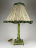 Antik oroszlánlábas zöld márványtalpas asztali lámpa 60 cm