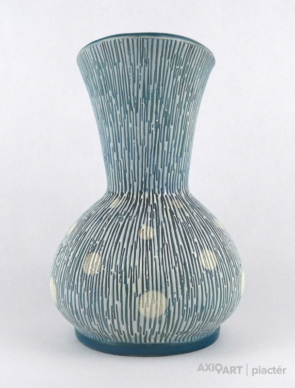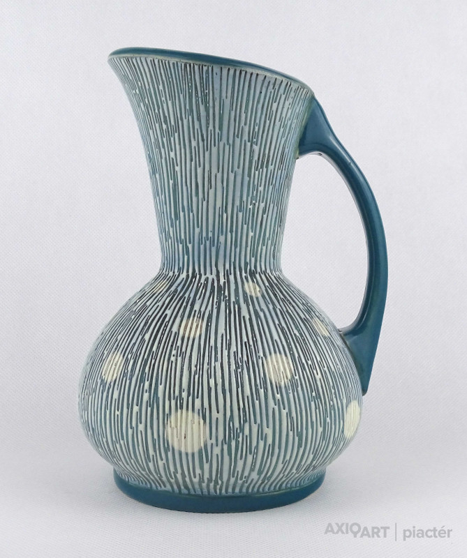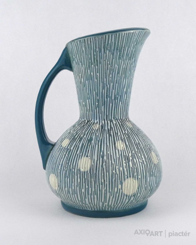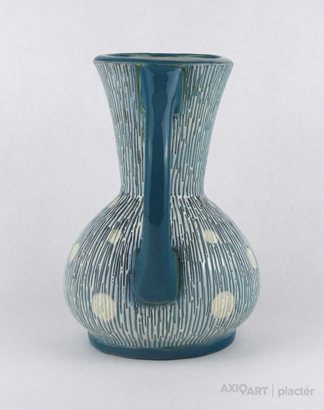 Hibátlan állapotú, nagyméretű, kék színű, jelzett osztrák AMPHORA art deco kerámia váza, kancsó.