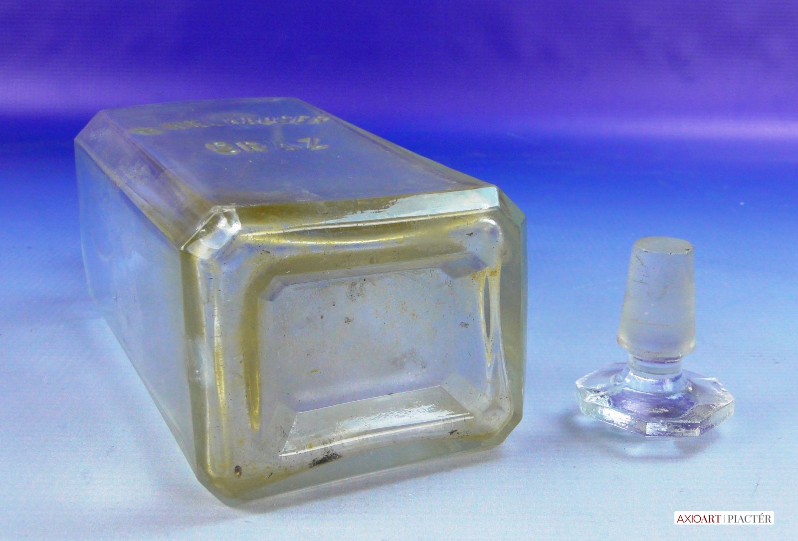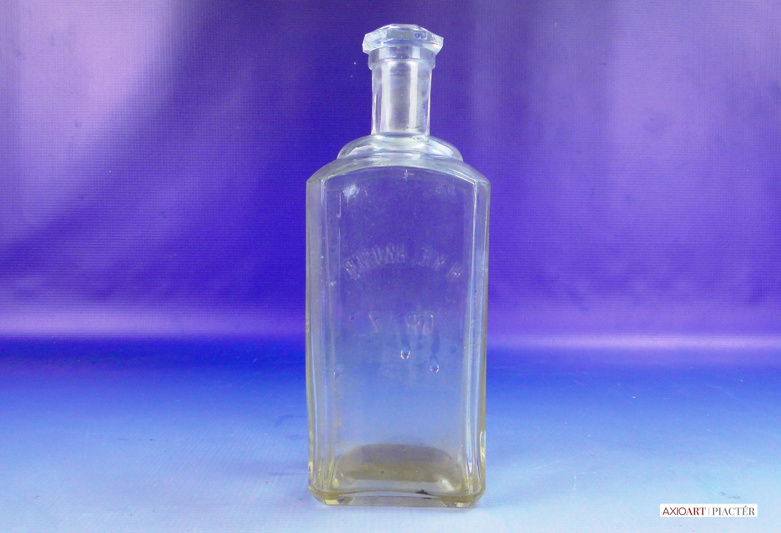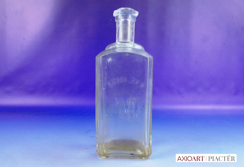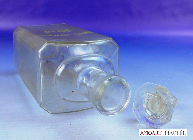 Régi, hibátlan állapotú, nagyméretű, gyógyszertári üveg, szögletes alakú osztrák patikaüveg.