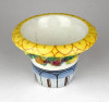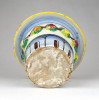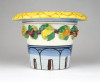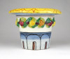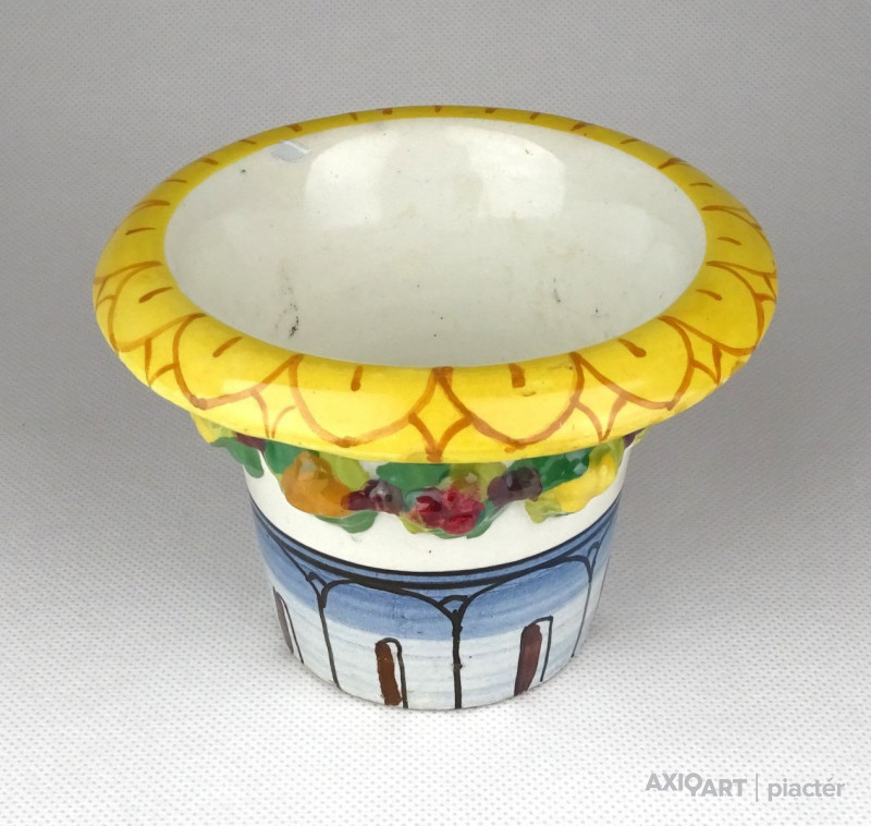 [0Y849/X017] Szép állapotú, kézzel festett színes mázas majolika pohár. Oldalán plasztikus gyümölcs díszítések láthatóak. Magasság: 8 cm Szélesség: 12 cm Súly: 0.235 kg