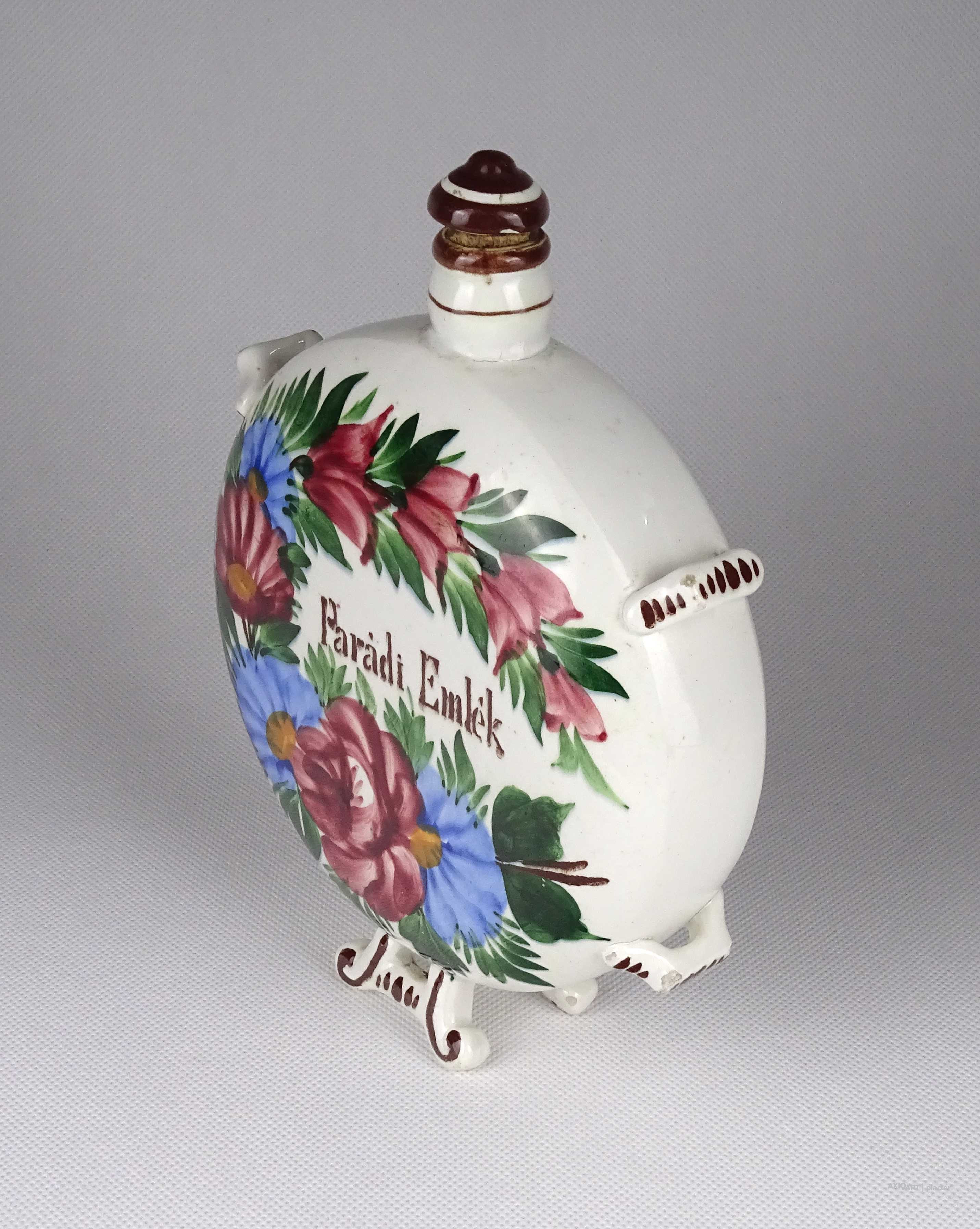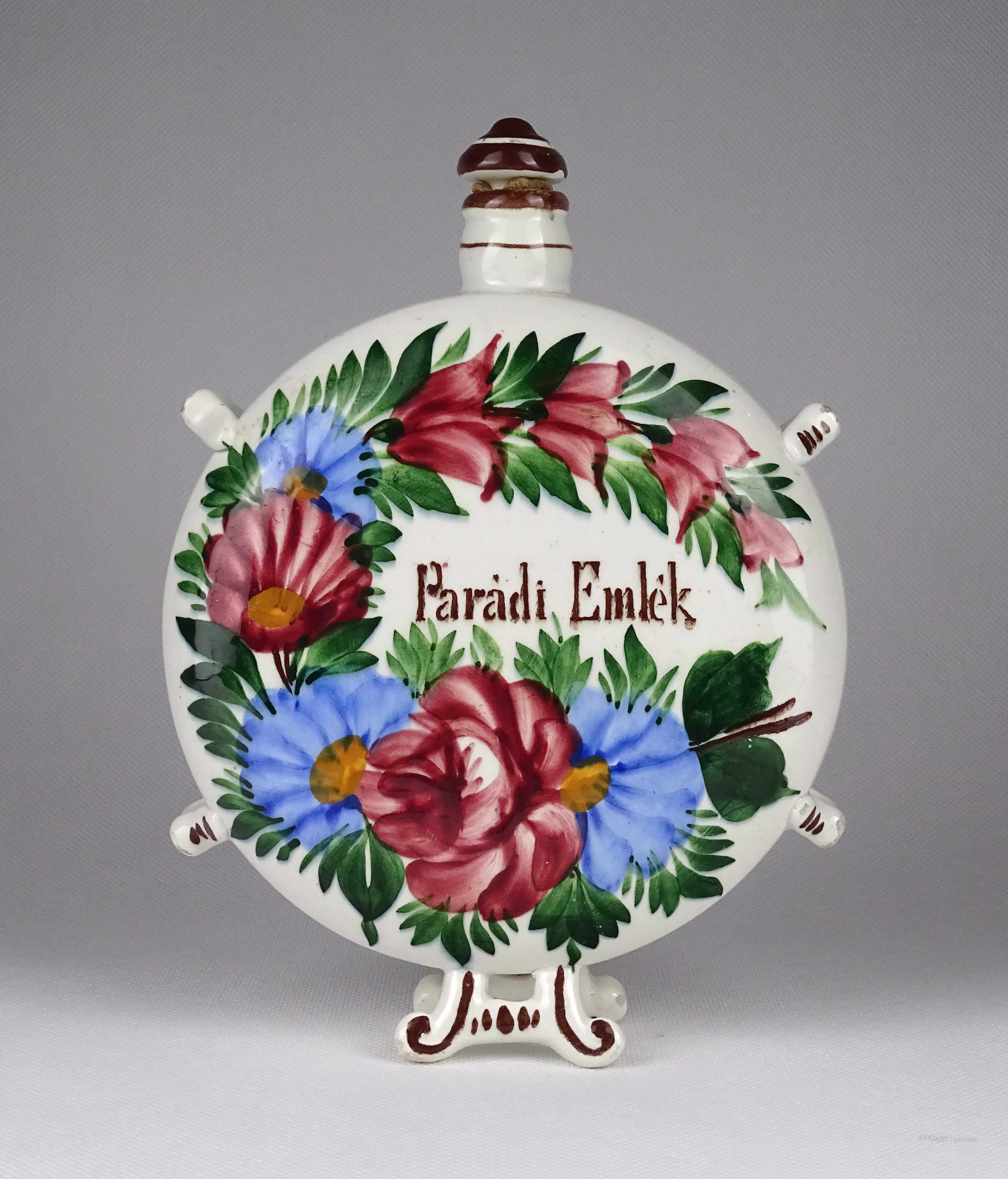 Antik PARÁDI EMLÉK feliratú Hollóházi kerámia kulacs dugóval