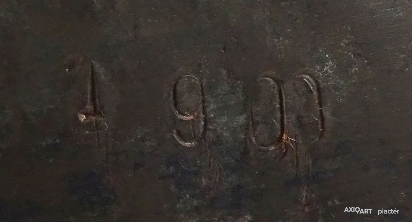 [1Y034/Z018] Olaj vászon festmény, üveglap mögött, szép állapotú képcsarnokos keretben. Akasztási lehetőséggel rendelkezik. Jelezve jobbra lent: Balog A. Hátoldalán a kereten Képcsarnok Vállalat címke töredék látható, rajta felirat: A művészeti alkotás címe: LEÁNY Magasság: 86 cm Szélesség: 66 cm Súly: 5.37 kg Balogh András (képei szignóján az 1960-as évektől Balog) (Budapest, 1919. március 14. — Budapest, 1992. március 18.) festőművész, kerttervező, művészeti szakíró, c. egyetemi tanár. Életpályája és munkássága Apai ágon a géresi Baloghok Szatmár megyéből a dél-erdélyi Alsó-Fehér megyébe származtak, anyai fölmenői a Székelyföldön: Csíkban, ill. Háromszéken éltek. Szülei az 1900-as évek elején költöztek Budapestre. A Képzőművészeti Főiskolán 1937-ben kezdte meg tanulmányait Burghardt Rezső tanítványaként. 1950-töl 1980-ig a Kertészeti Főiskolán (később Kertészeti Egyetem) tanított a kerttervezési tanszéken művészettörténetet, szabadkézi rajzot, ábrázoló geometriát és kertesztétikát. Az Iparművészeti Főiskolán óraadóként kertesztétikát adott elő. 1971-ben részt vett a firenzei Palazzo Strozziban rendezett biennálén, ahol aranyéremmel tüntették ki. Rendszeres önálló és csoportos kiállítások sora következett ezután nemcsak Magyarországon, hanem Olaszország és Németország számtalan városában, kiállított Finnországban, Kanadában is. Egyéni kiállításai gyakran katalógusokkal jelentek meg.[1][2][3] Nyaranként Tihanyban vagy Zsennyén alkotott. Festészetét poétikus realizmus jellemzi, dekoratív elrendezésű kompozíciói és lágy színvilága bensőséges hangulatot, szépséget, harmóniát árasztanak. (Lány egyszarvúval; Alvó, Emberpár és táj, stb.) Nagyon sok tájképet és portrét festett, történelmi személyiségekről is, 1978 és 1989 közt megfestette Mindszenty József bíboros portréját. Képei a Magyar Nemzeti Galériában, vidéki múzeumainkban, olasz, német, finn, észak-amerikai, kanadai, ausztráliai gyűjteményekben vannak.