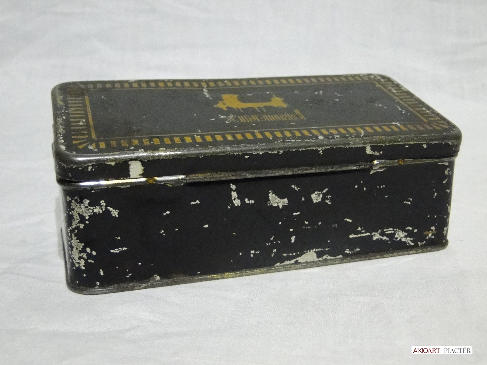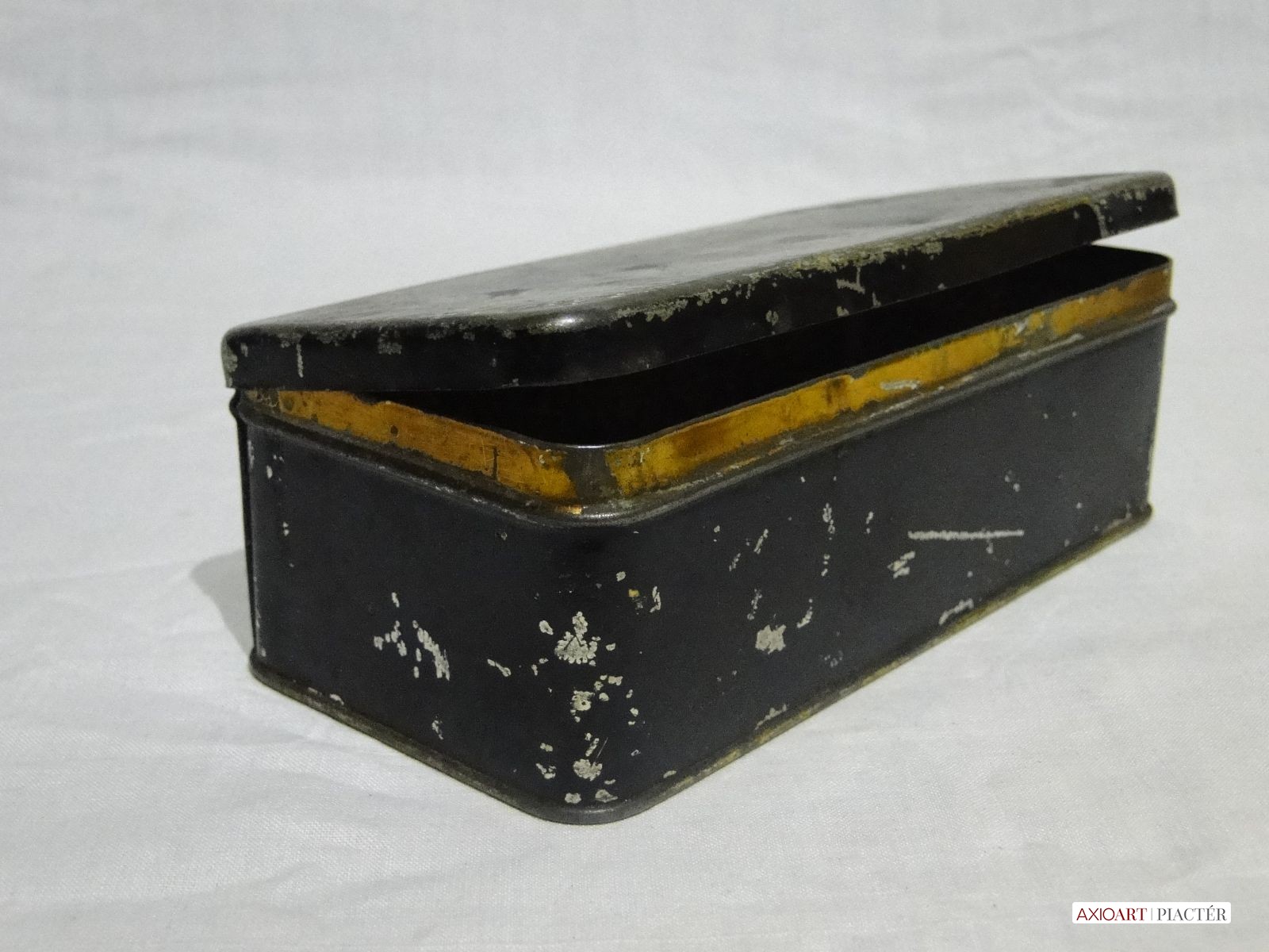 [0491/Y017] Szép állapotban megmaradt fekete-arany színű PHOENIX feliratos fém varrógép alkatrészes doboz, pléhdoboz. Magasság: 5 cm Szélesség: 7.5 cm Hosszúság: 15.5 cm Súly: 0.132 kg