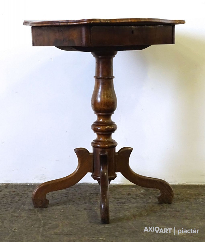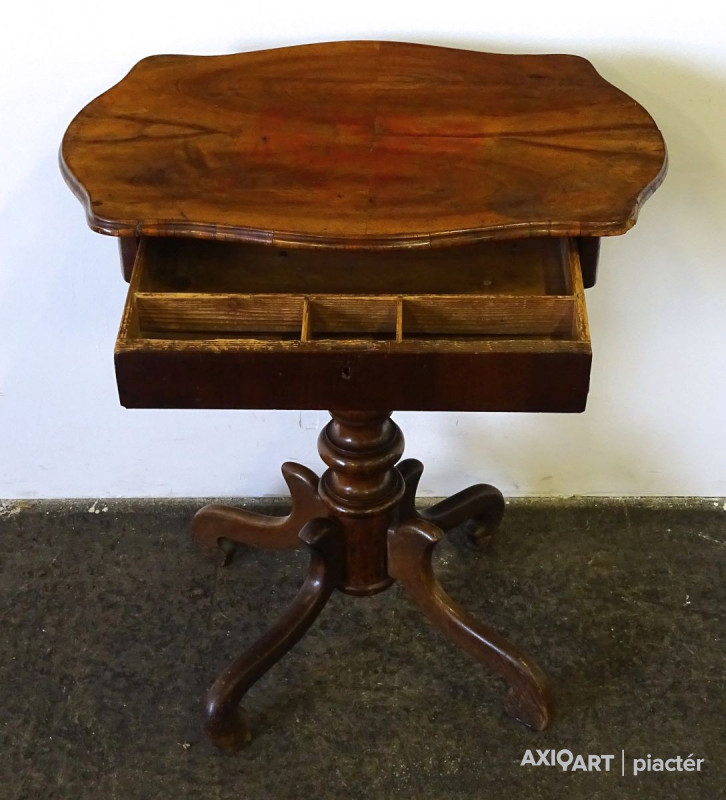 Antik neobarokk fiókos varróasztal, lerakóasztal. Restaurálás mentes, eredeti állapotban, az 1800-as évek végéről. Fiókja osztott. Az asztallap széle hiányos.