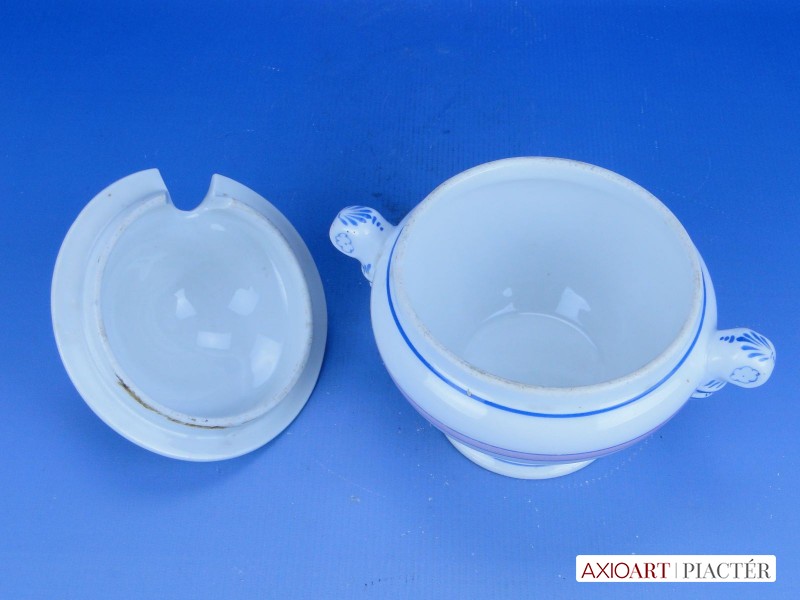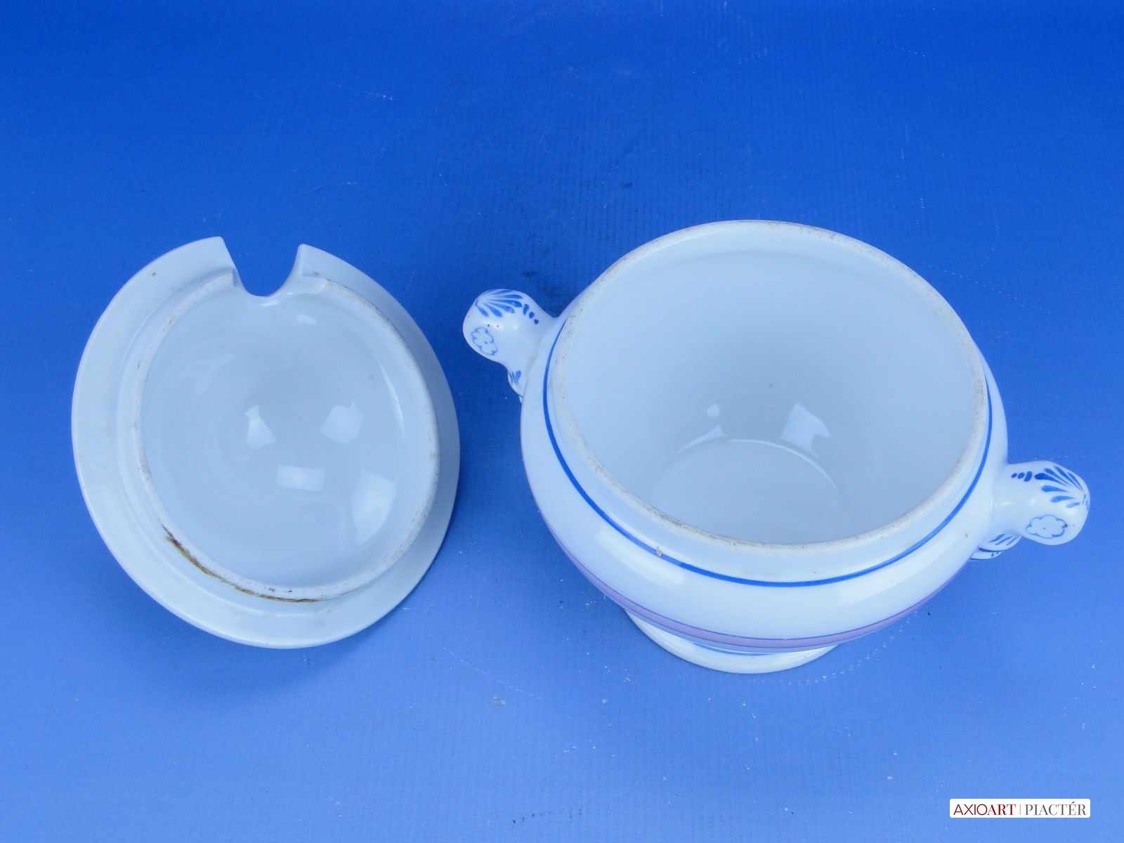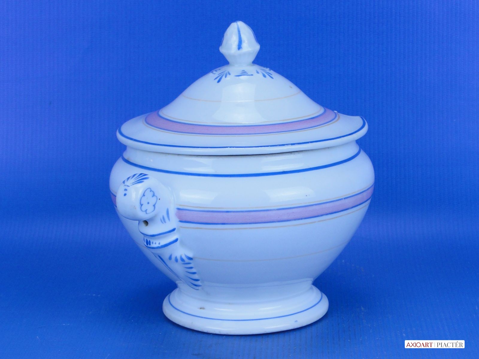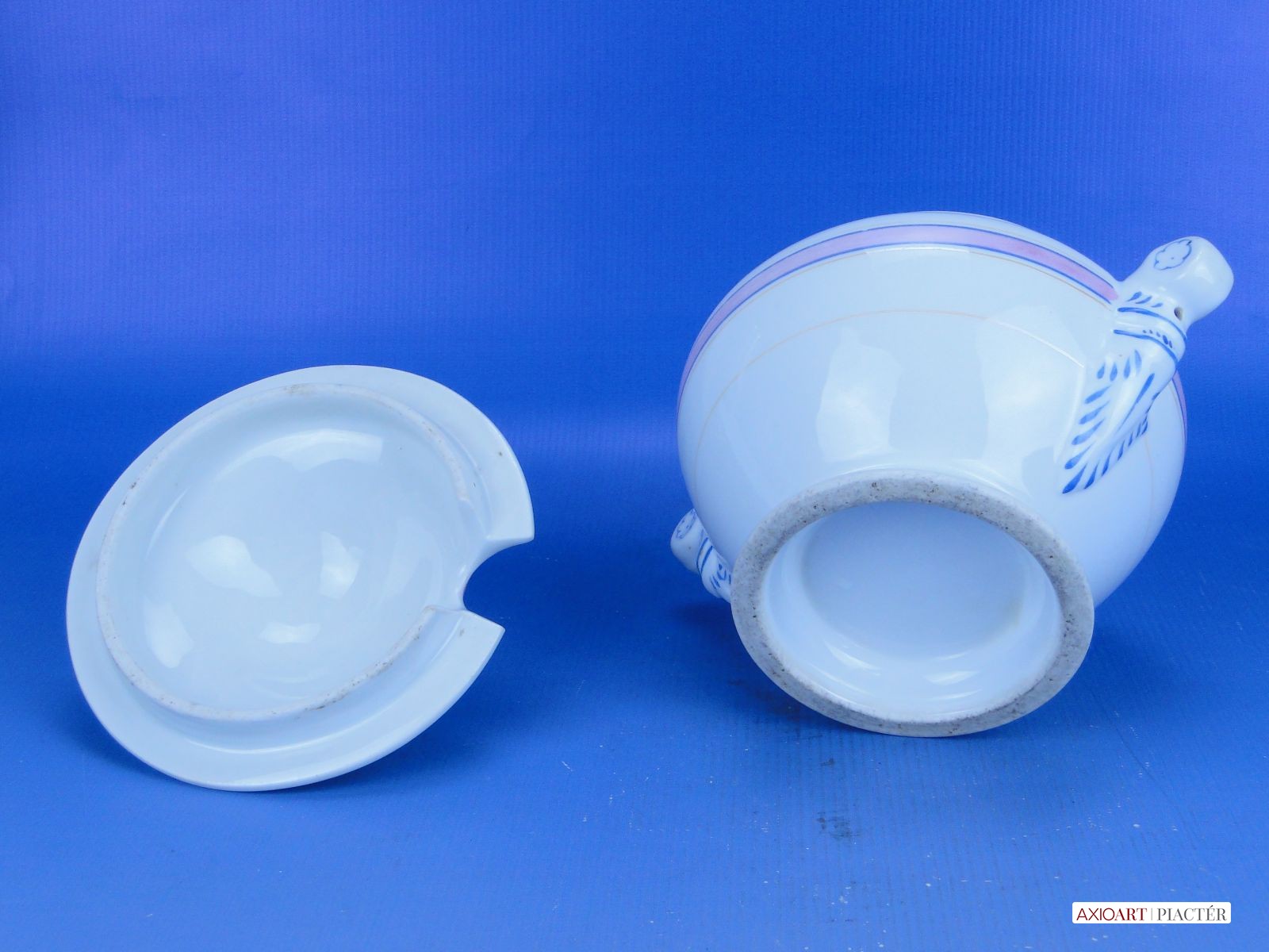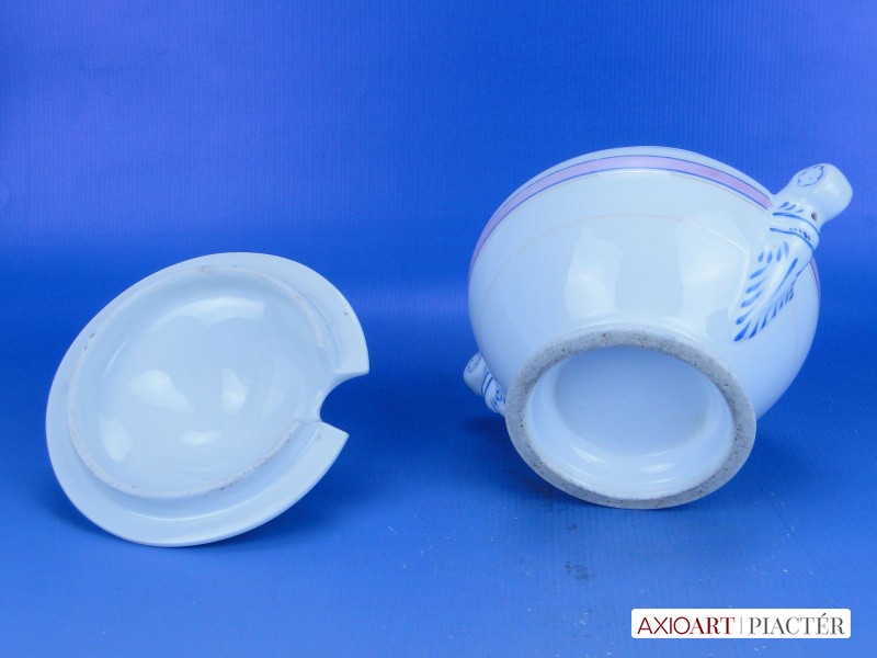 [0D497/X312] Antik, hibátlan állapotú fedeles porcelán mártásos, szószos kínáló tál. Magasság: 15 cm Szélesség: 13.5 cm Súly: 0.606 kg