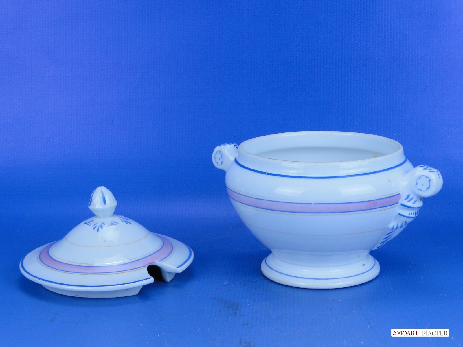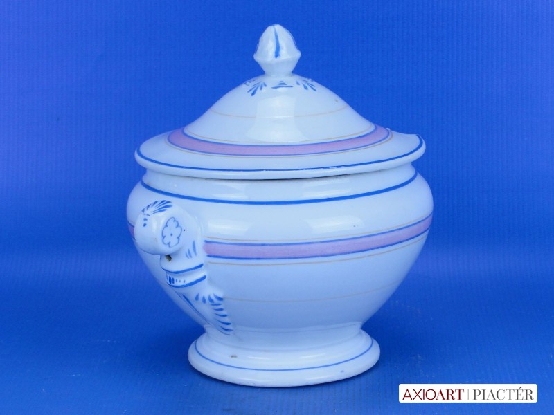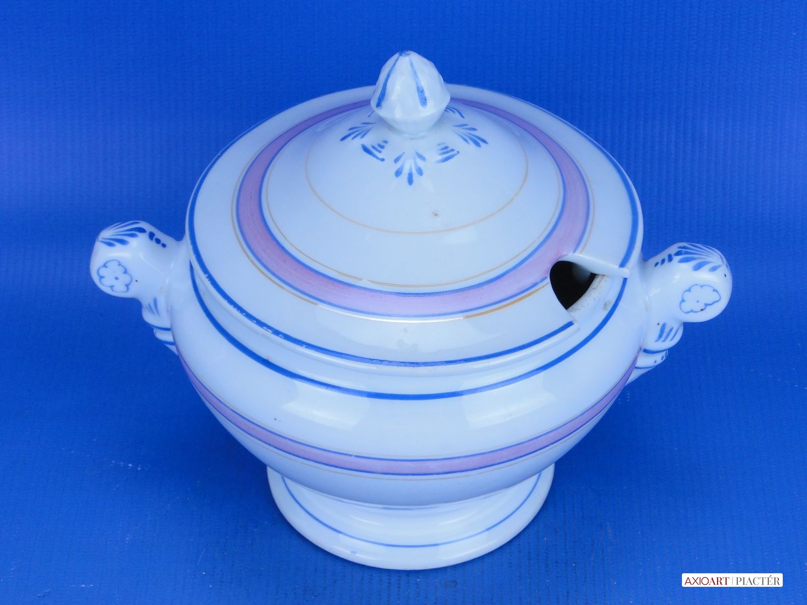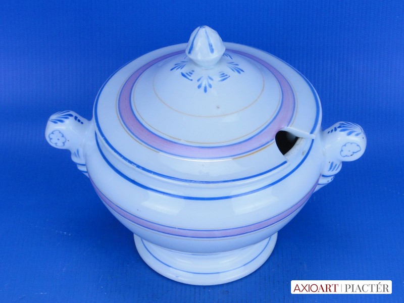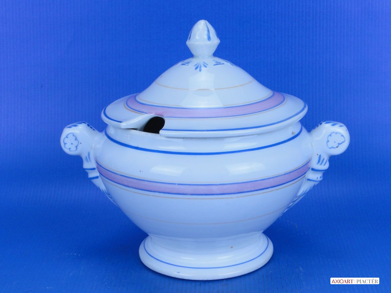 [0D497/X312] Antik, hibátlan állapotú fedeles porcelán mártásos, szószos kínáló tál. Magasság: 15 cm Szélesség: 13.5 cm Súly: 0.606 kg